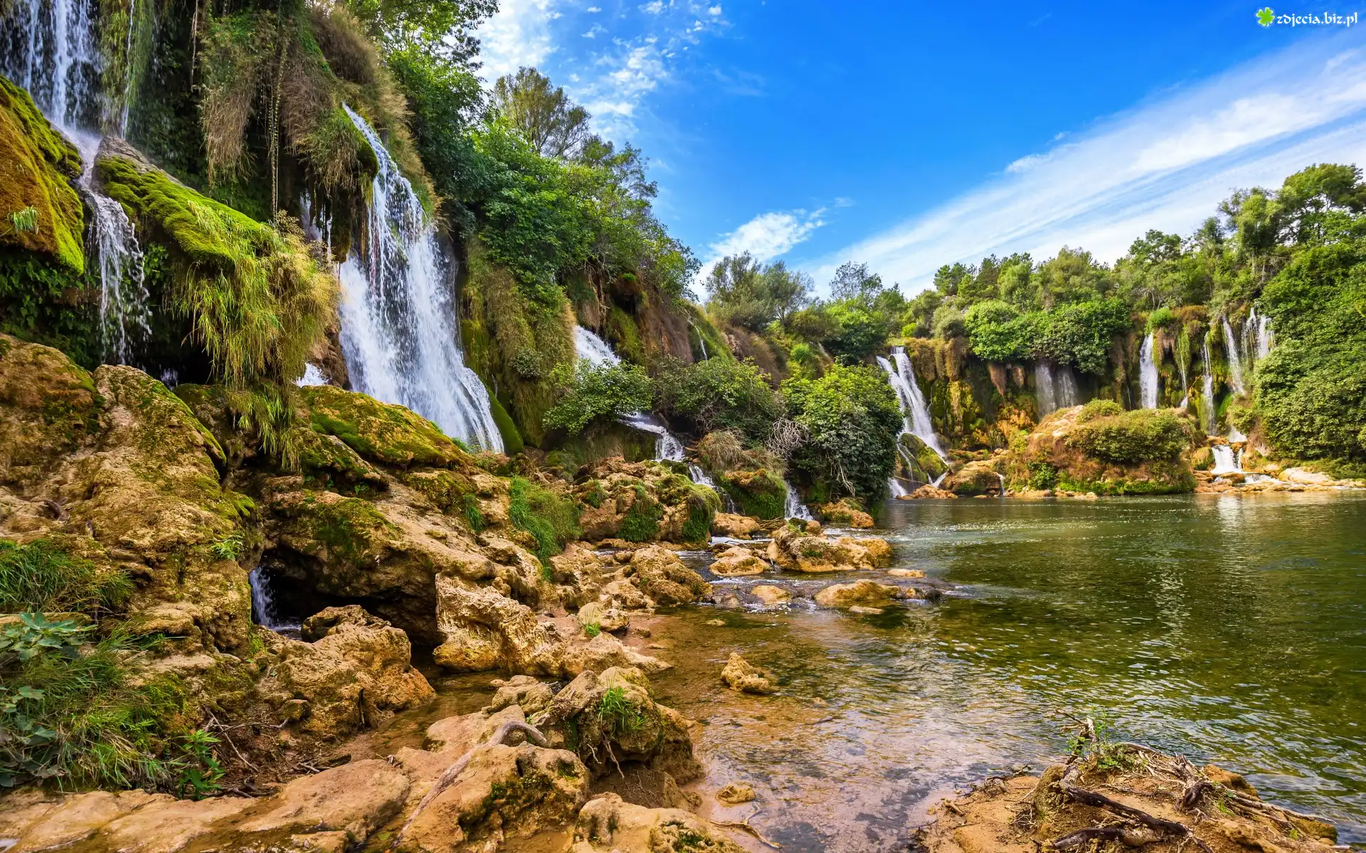 Zdjęcie Bośnia i Hercegowina, Wodospady Kravica, Rzeka Trebižat, Kamienie, Drzewa