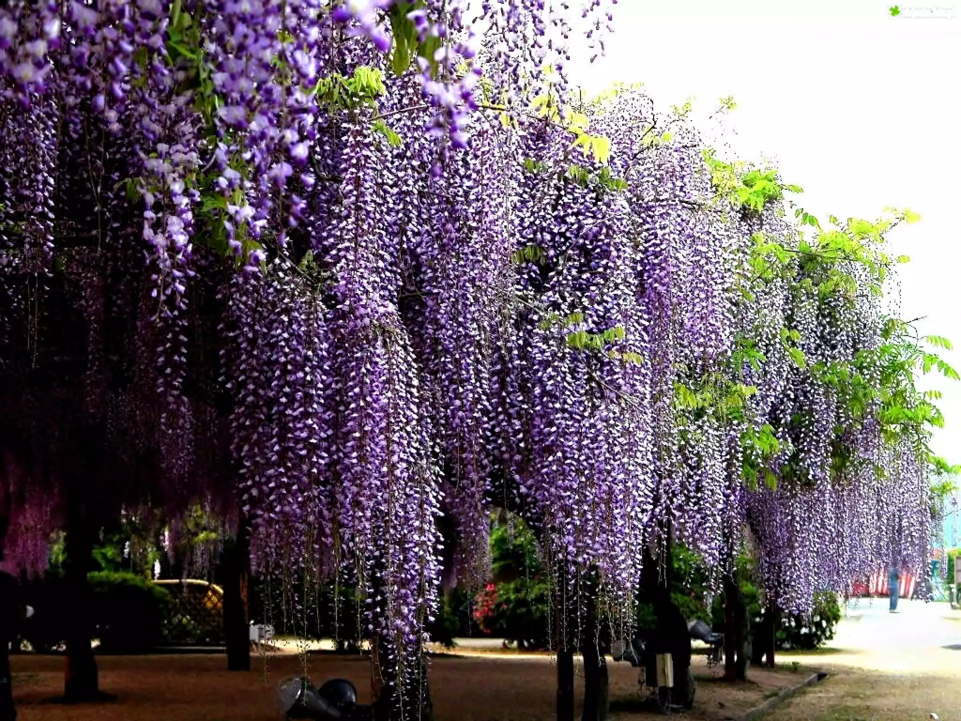 Zdjęcie Drzewa, Glicynia, Fioletowe, Kwiaty, Park