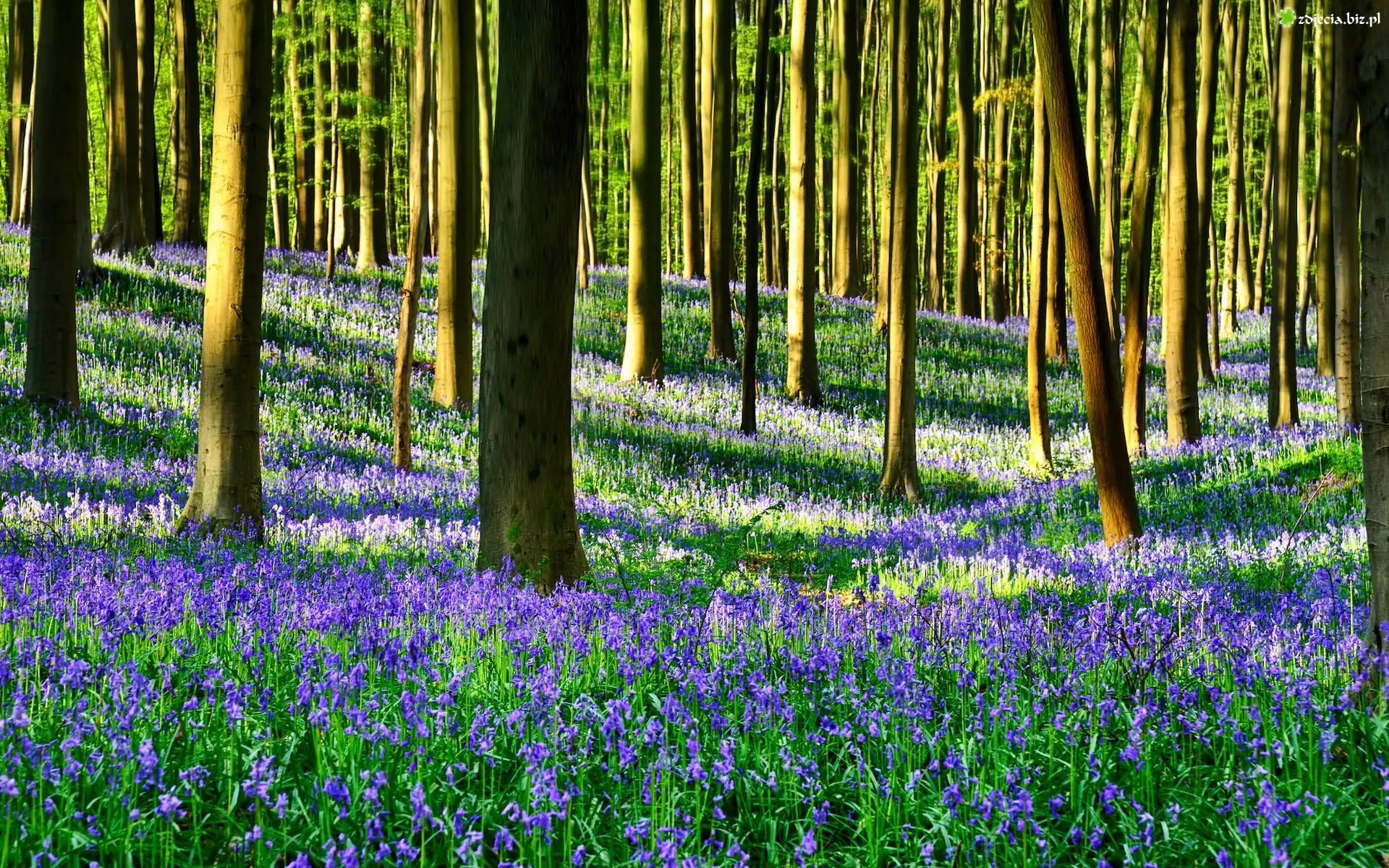 Zdjęcie Las, Drzewa, Kwiaty, Dzwonki, Wiosna