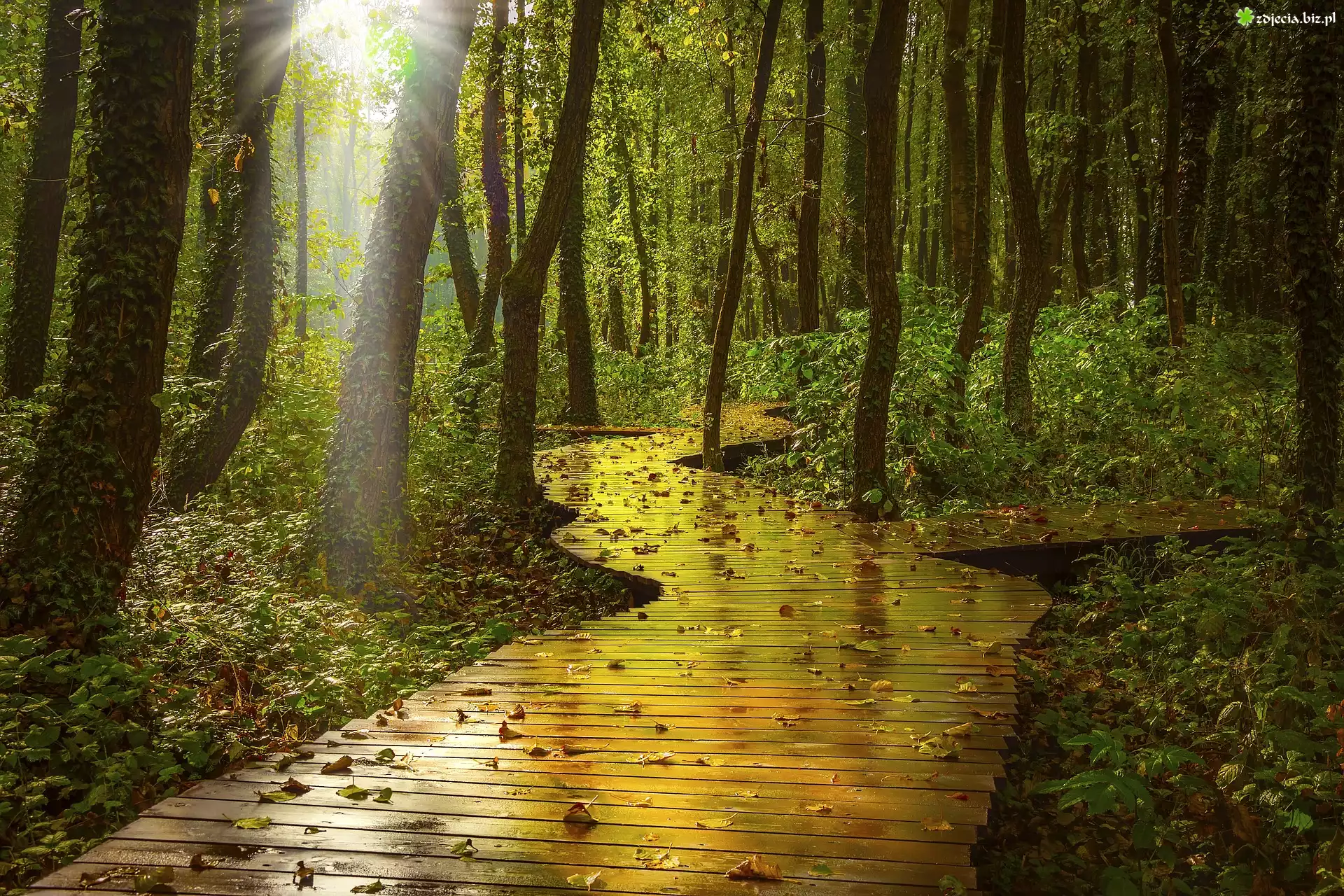Zdjęcie Las, Droga, Pomost, Drzewa