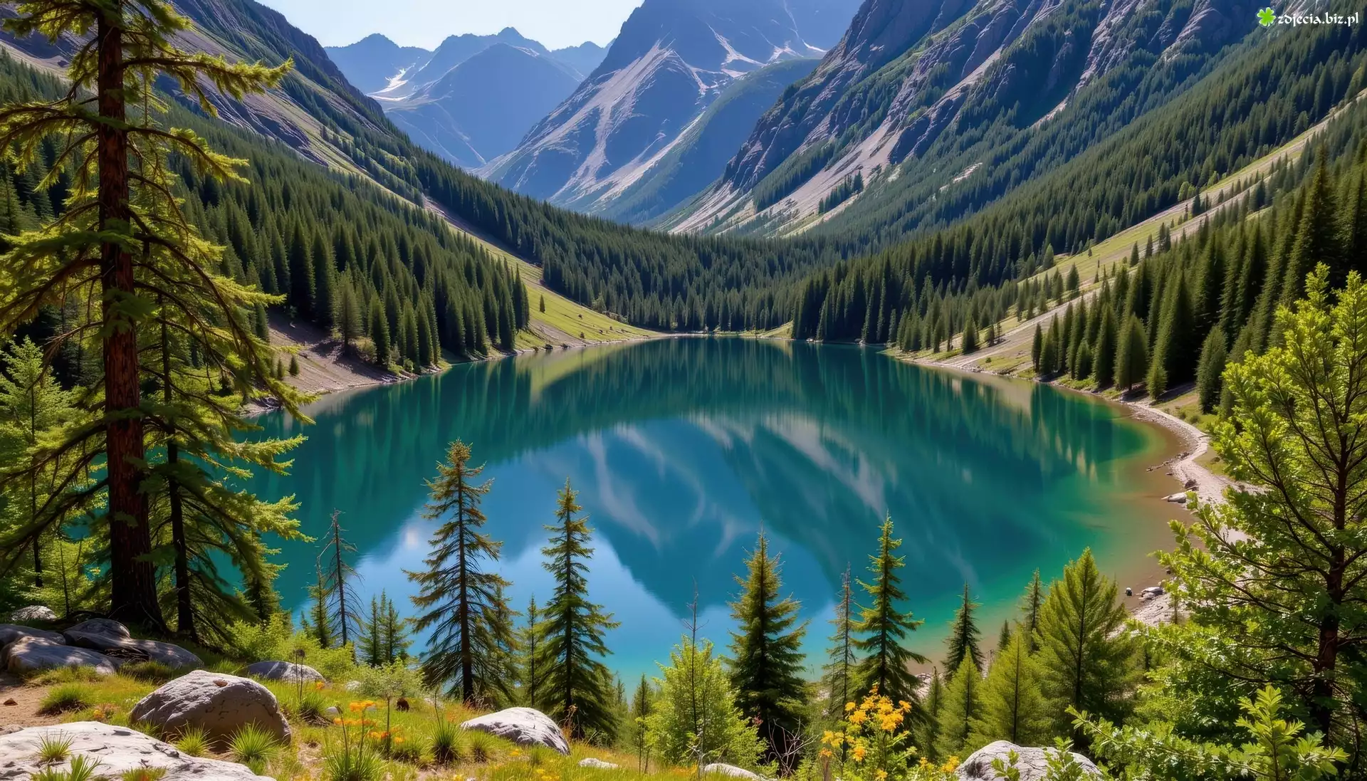 Zdjęcie Jezioro, Drzewa, Lasy, Góry, Grafika