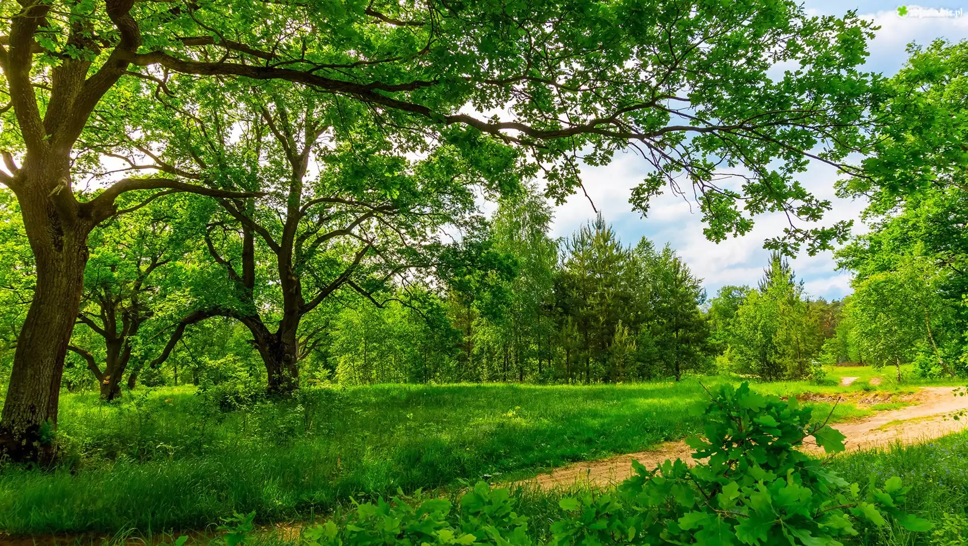 Zdjęcie Drzewa, Trawa, Lato, Ścieżka