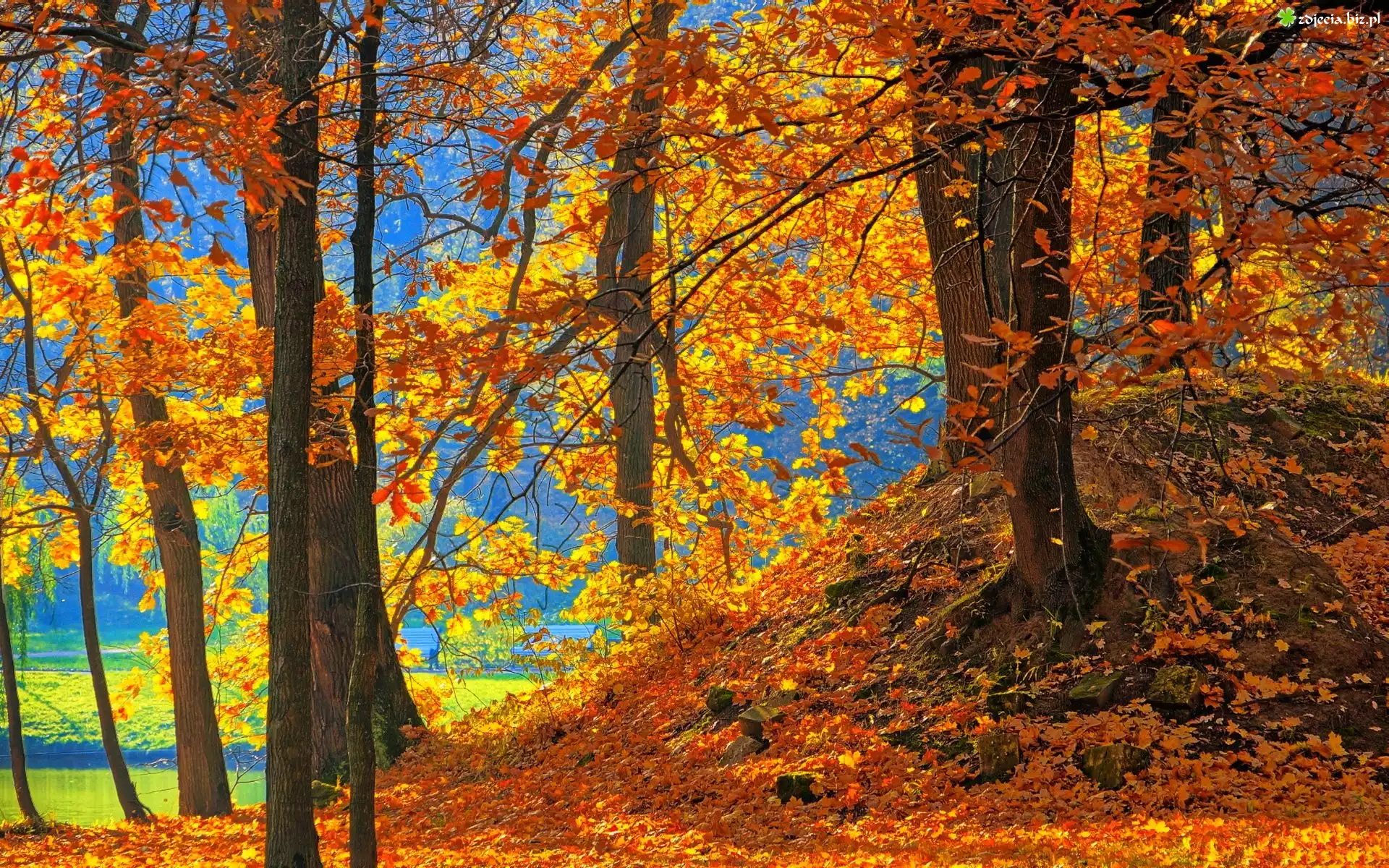Zdjęcie, Drzewa, Nad Jeziorem, Opadłe Liście, Park