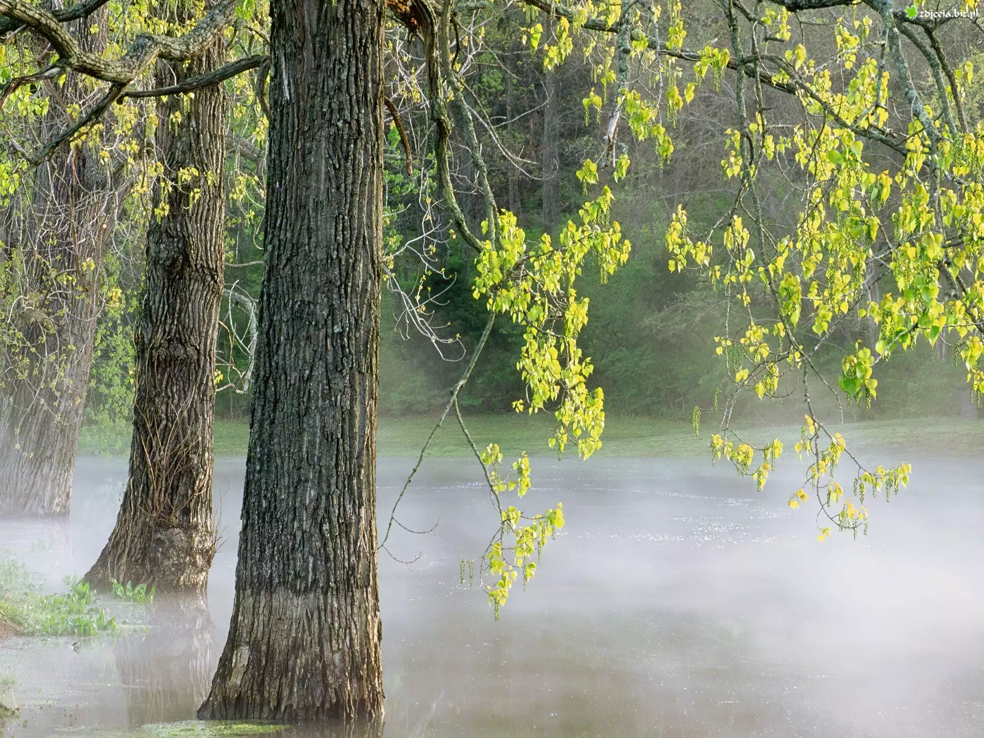 Zdjęcie Drzewa, Zielone, Listki, Mgła
