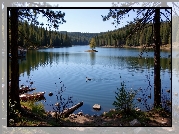Zdjęcie Jezioro, Drzewa, Łódki, Kamienie, Rośliny