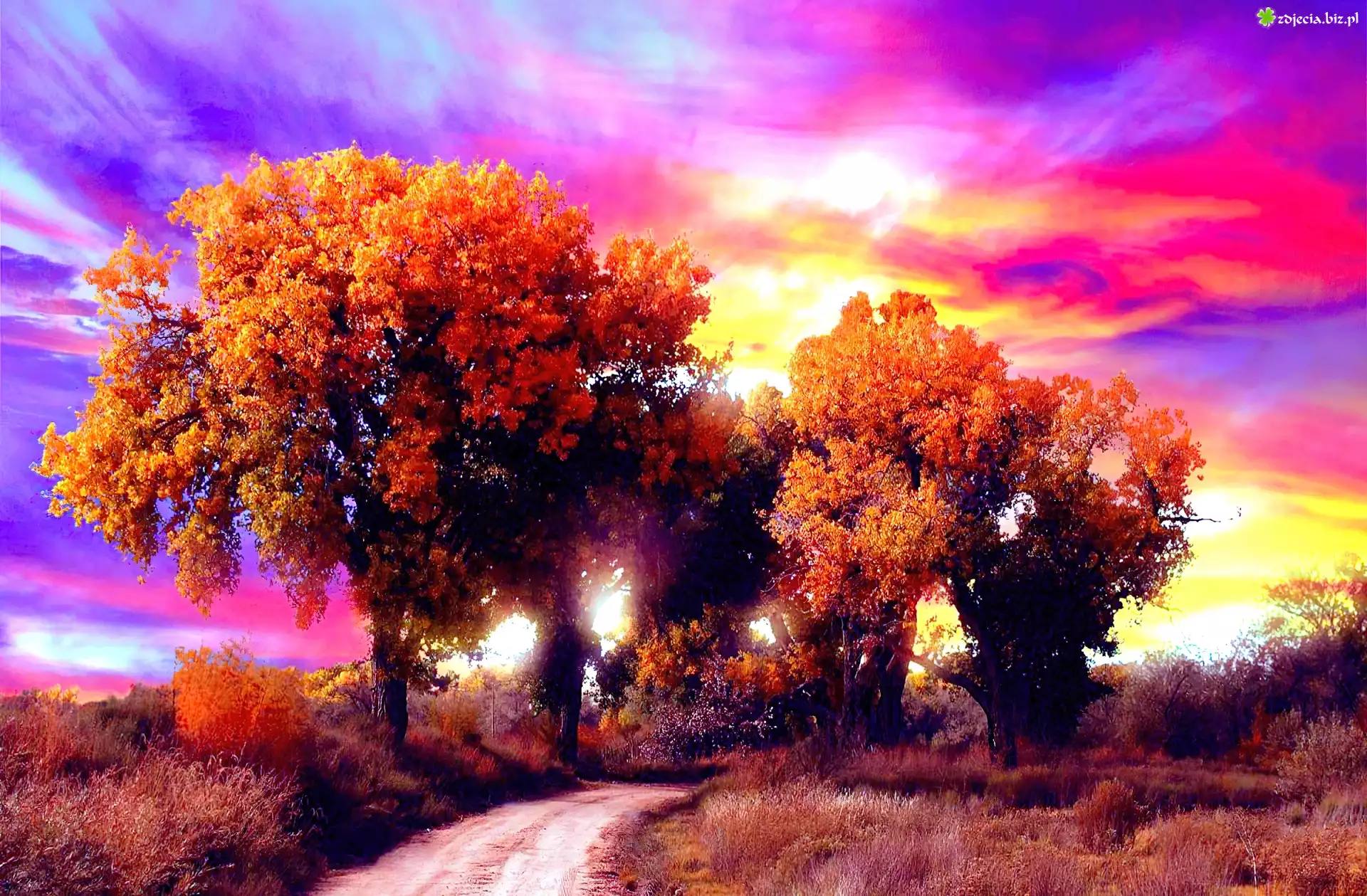 Zdjęcie Drzewa, Kolorowe, Niebo, Jesień
