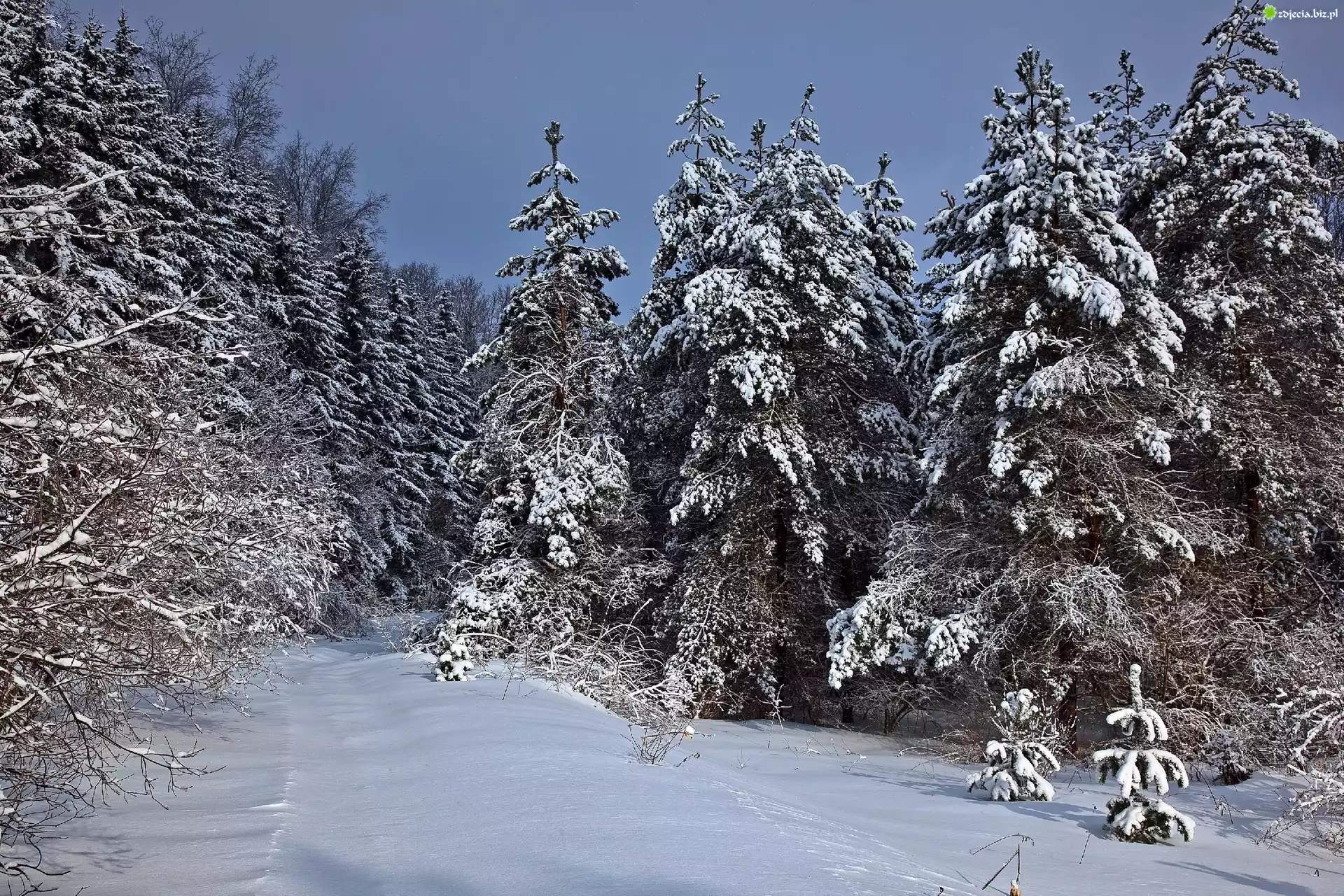 Zdjęcie Drzewa, Świerki, Śnieg, Zima