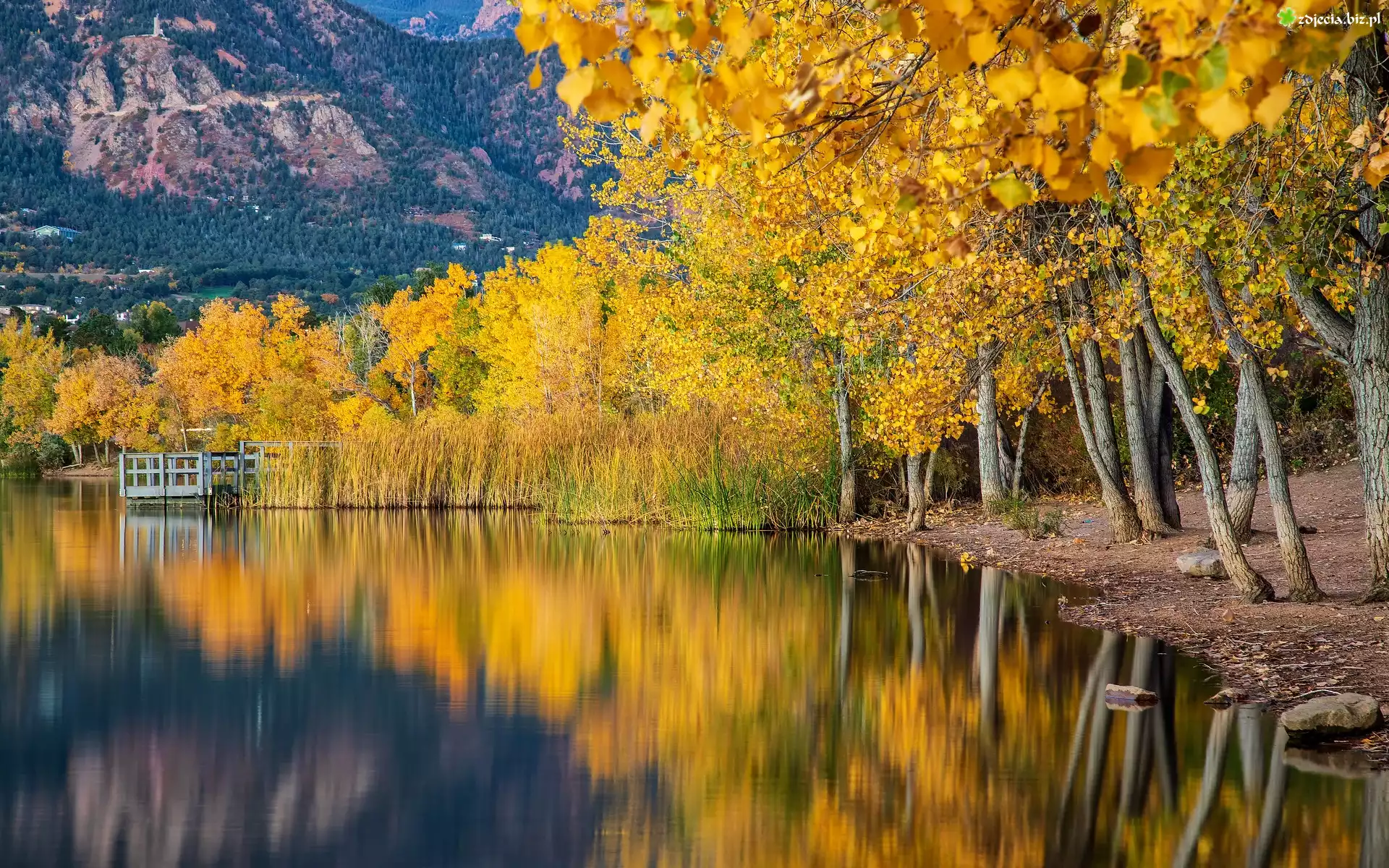 Zdjęcie Góry, Jezioro, Las, Drzewa, Jesień, Odbicie
