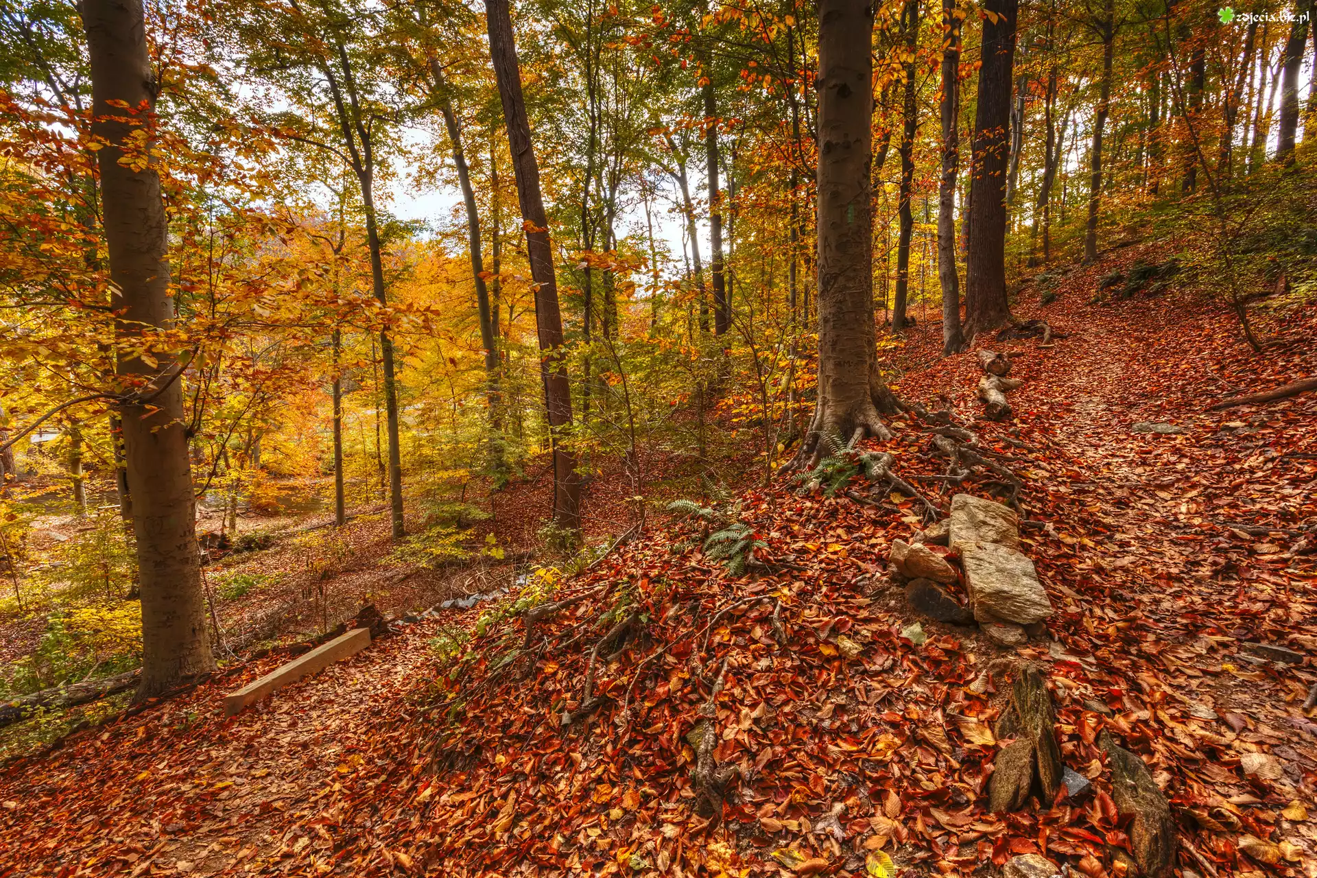 Zdjęcie, Drzewa, Las, Jesień, Opadłe, Liście