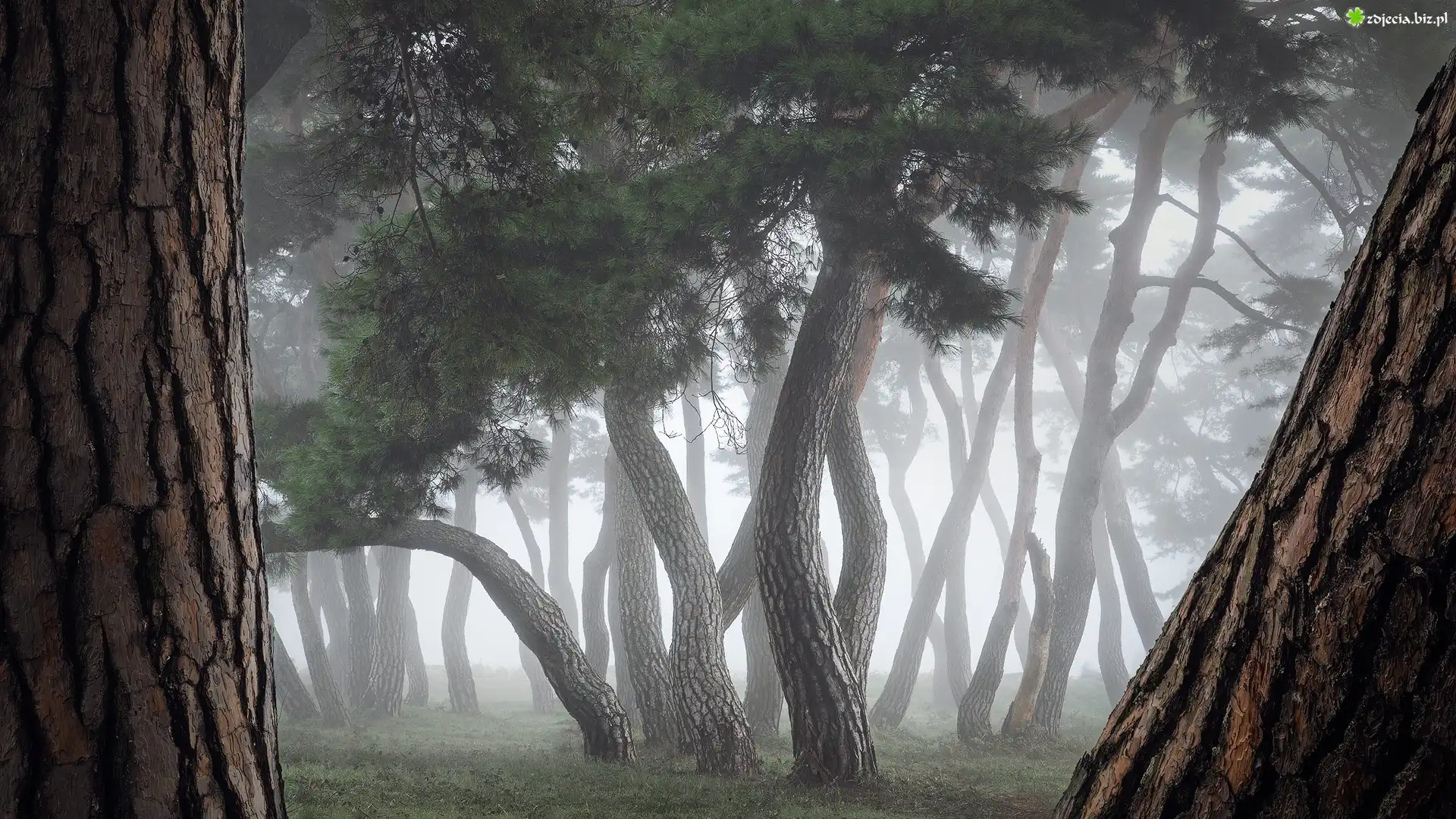 Zdjęcie Drzewa, Las, Pnie, Mgła