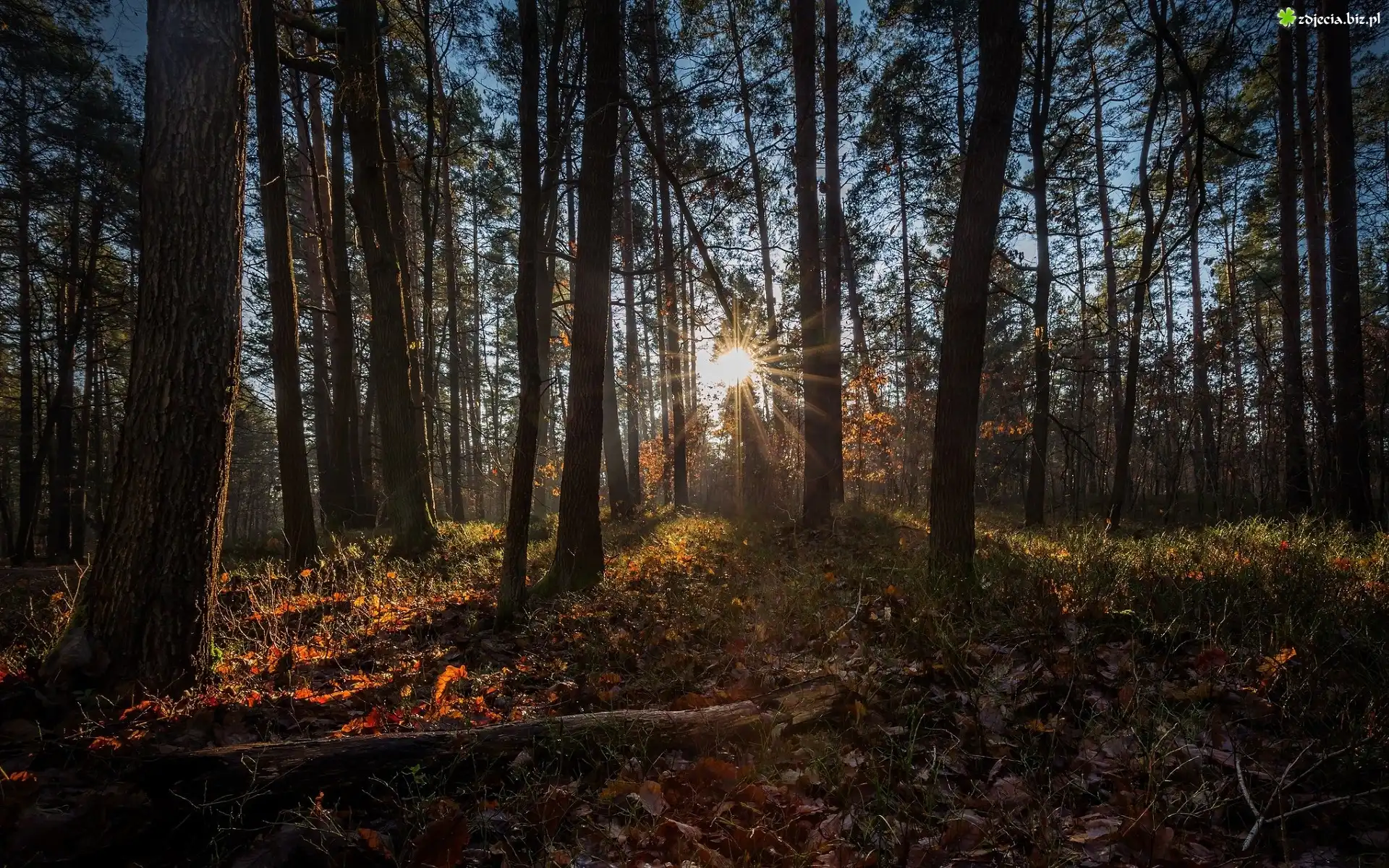 Zdjęcie Drzewa, Las iglasty, Promienie słońca