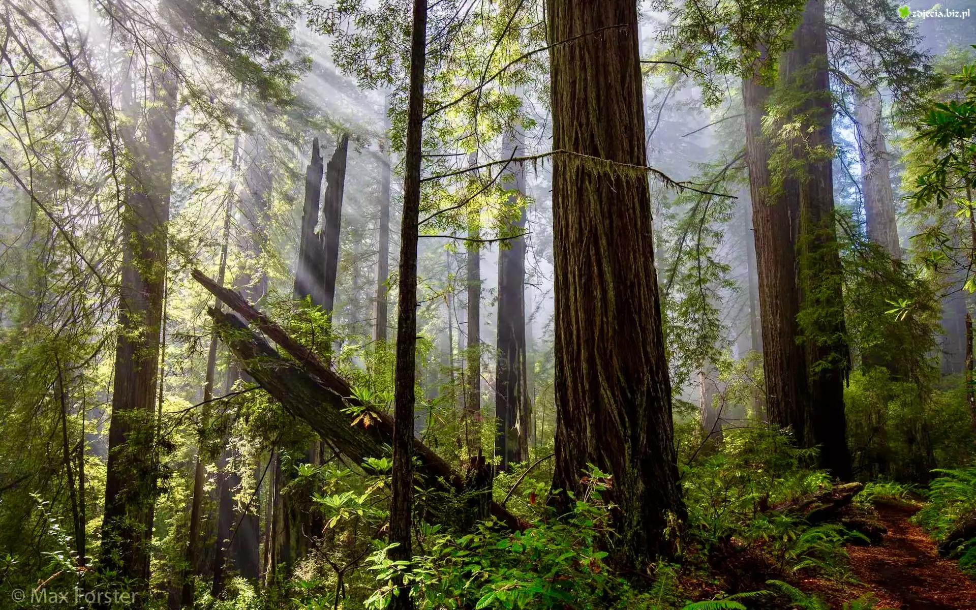 Zdjęcie Las, Drzewa, Przebijające światło, Roślinność