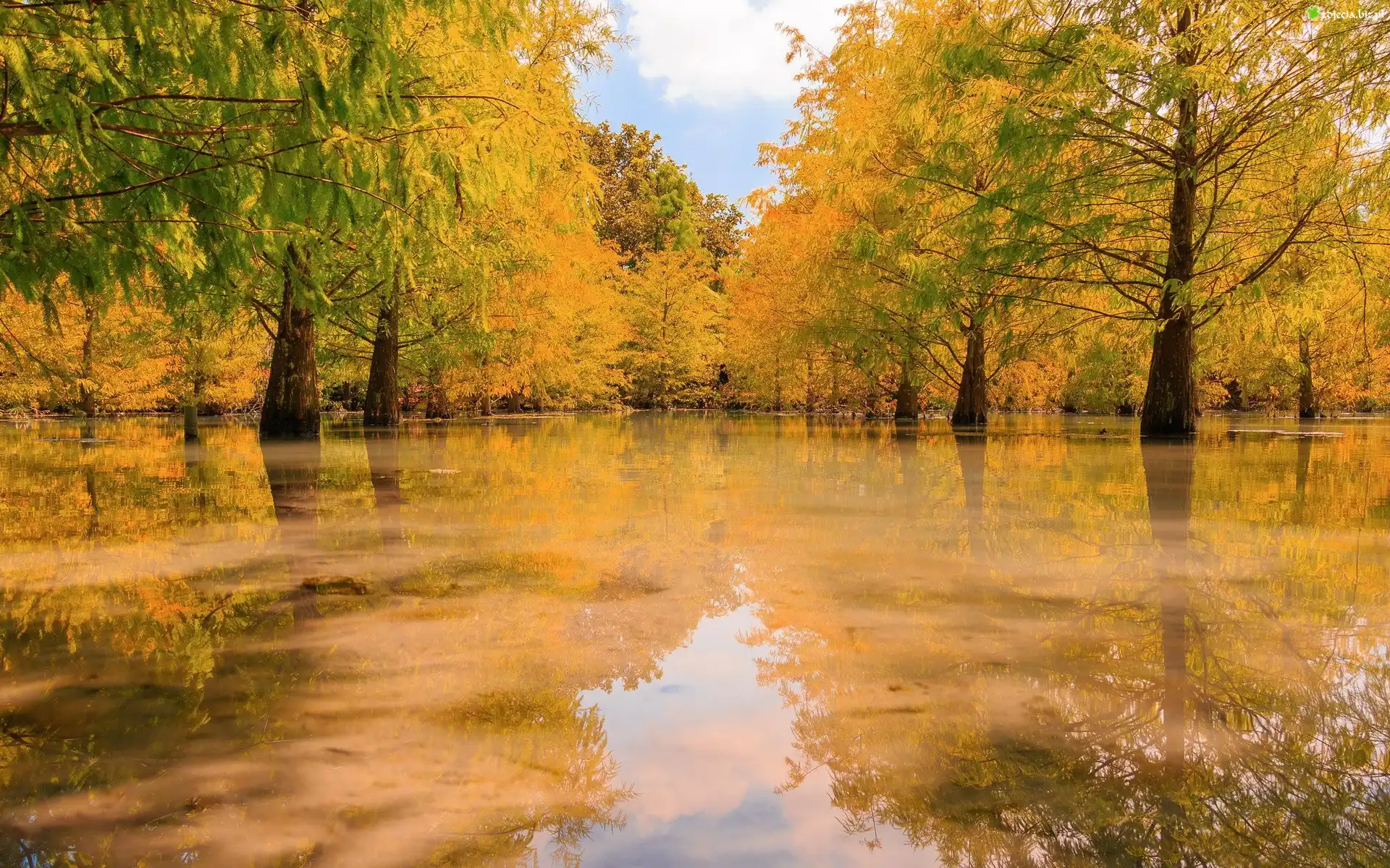 Zdjęcie, Drzewa, Rozlewisko