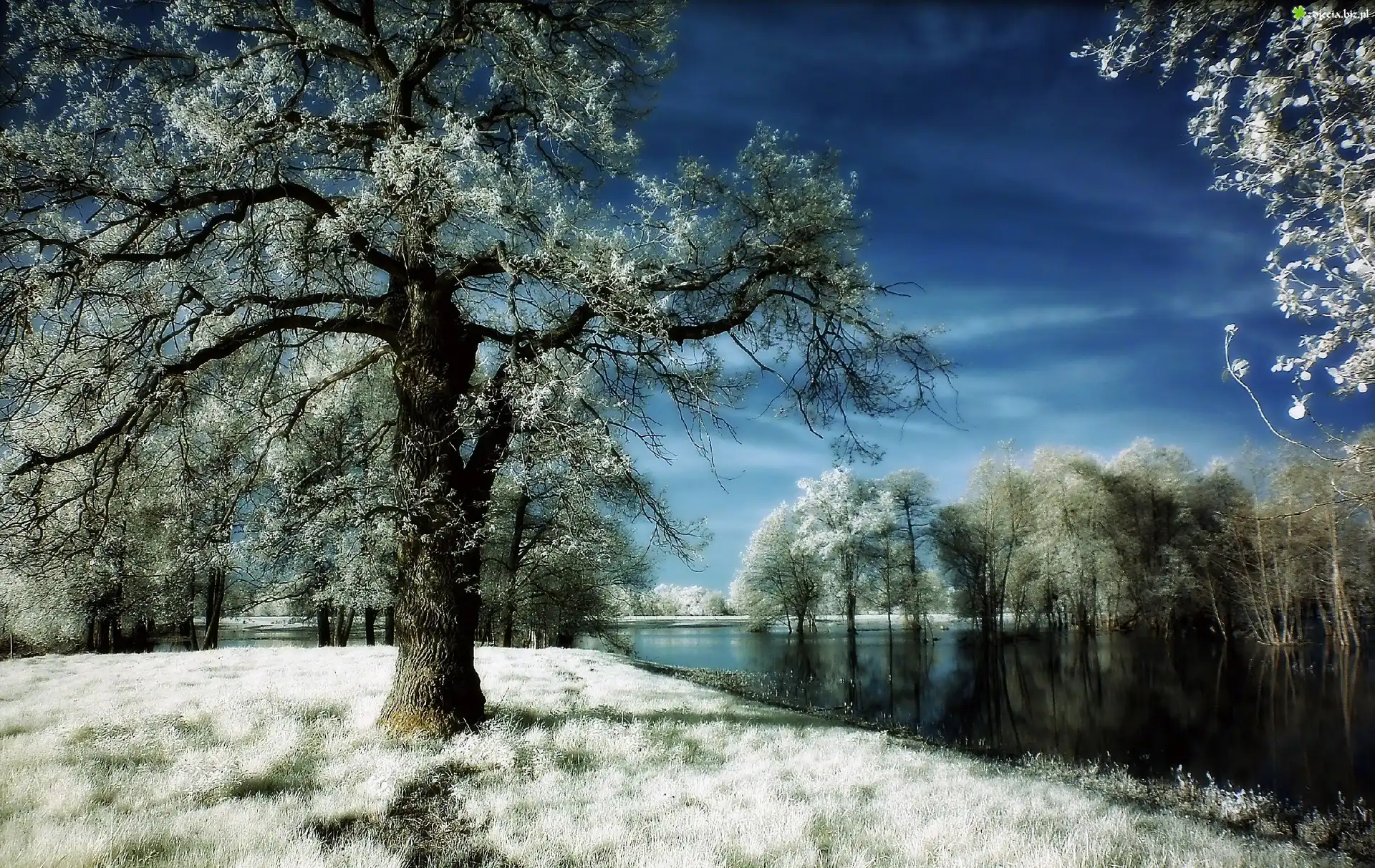 Zdjęcie, Rzeka, Drzewa, Śnieg