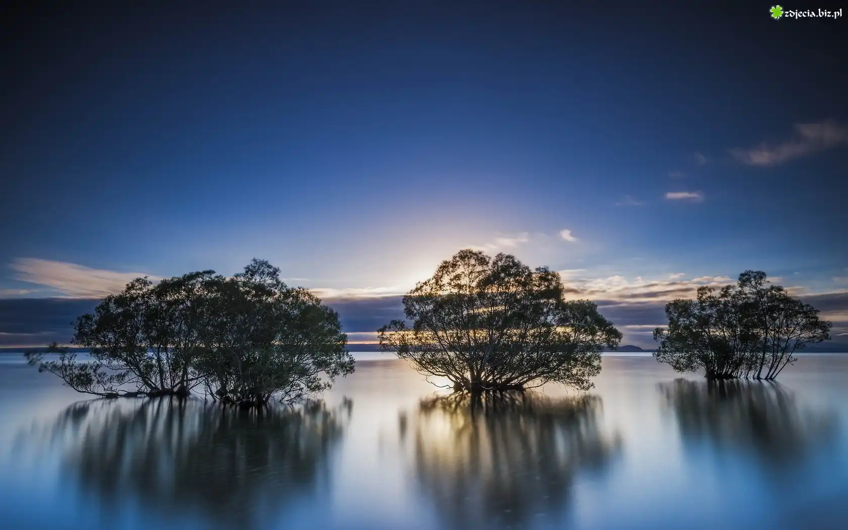 Zdjęcie, Rzeka, Drzewa, Zmrok