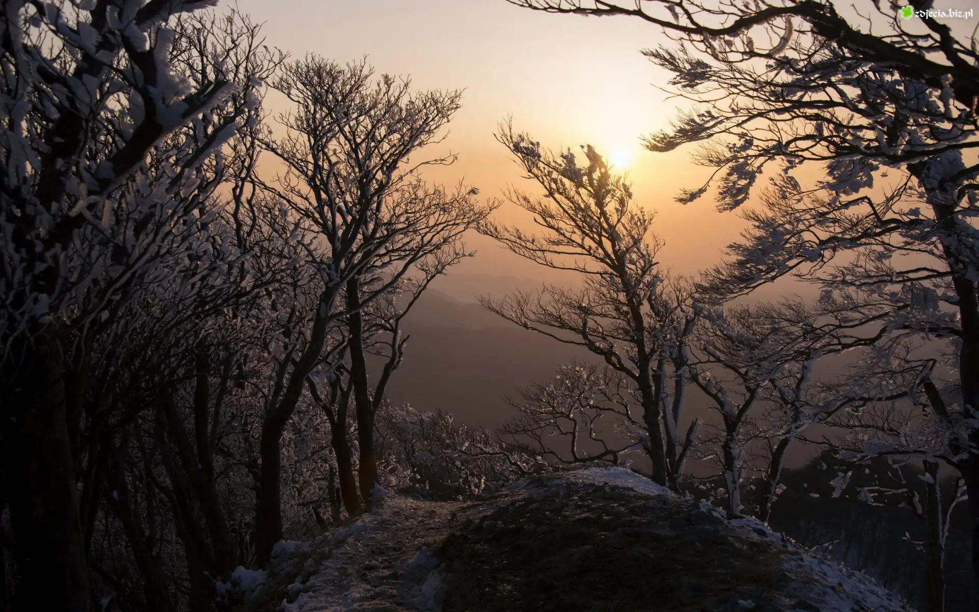 Zdjęcie Drzewa, Wschód słońca, Wzgórze