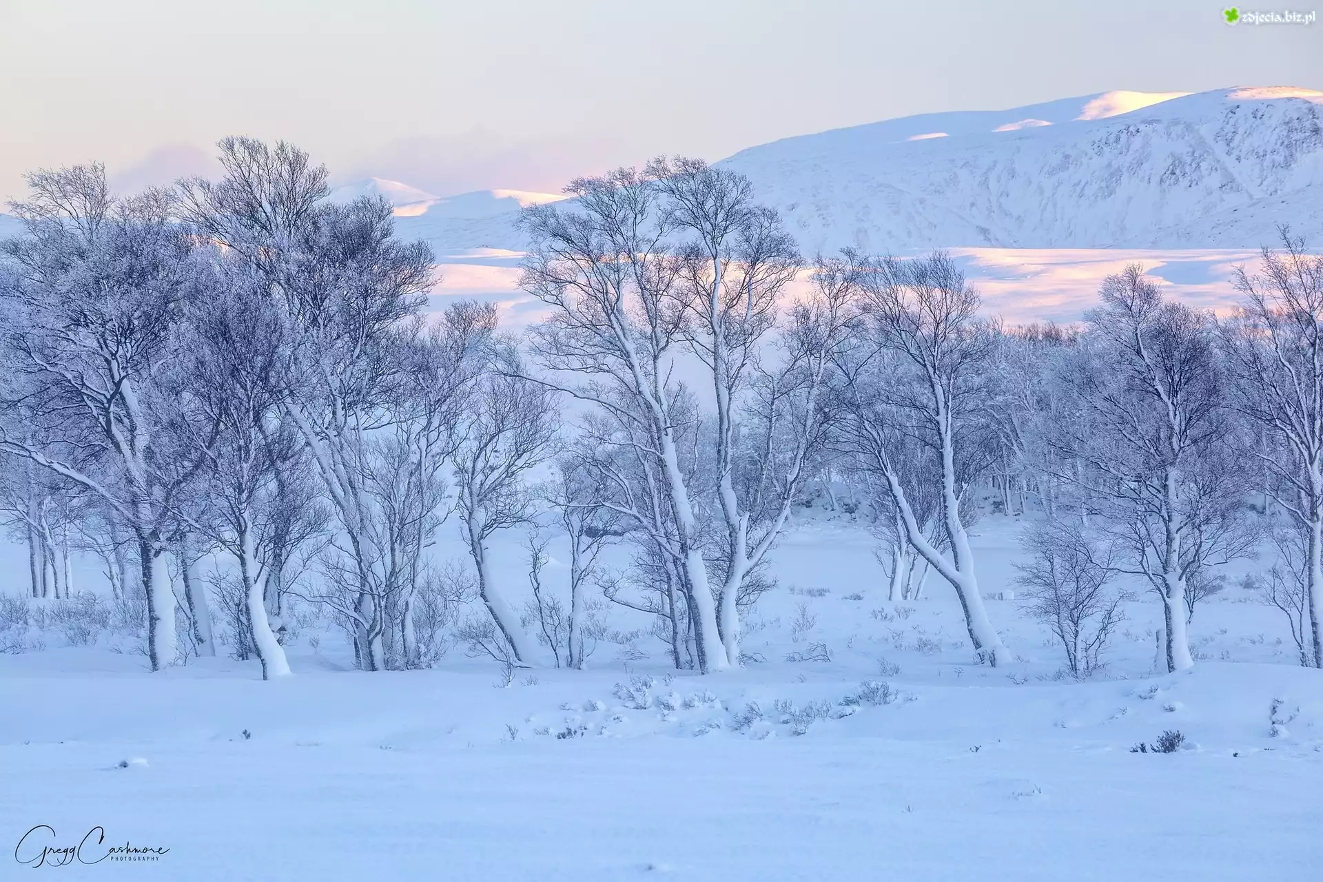 Zdjęcie Zima, Drzewa, Góry Rannoch Moor, Wieś Glencoe, Szkocja