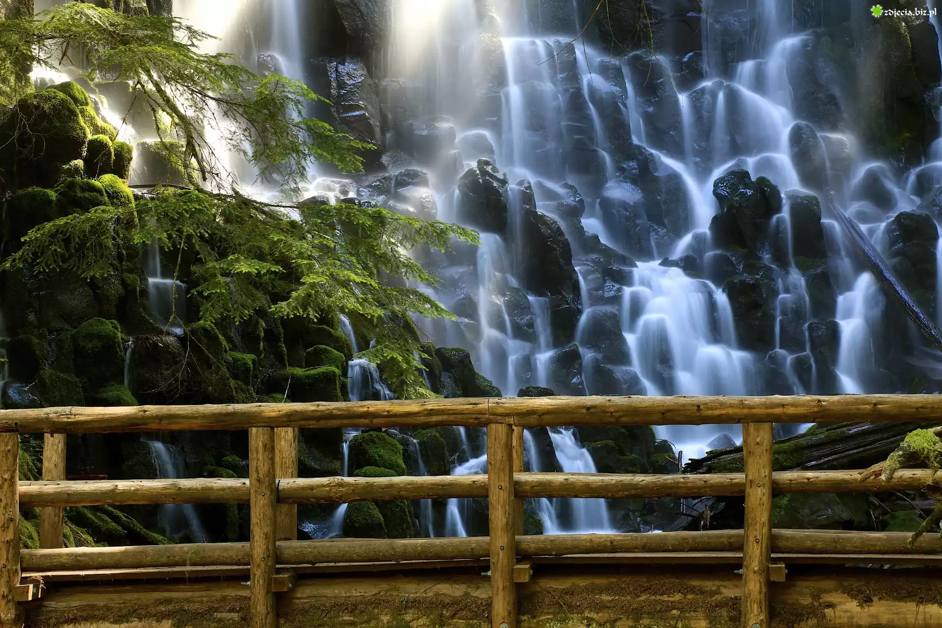 Zdjęcie, Wodospad, Drzewa, Barierki
