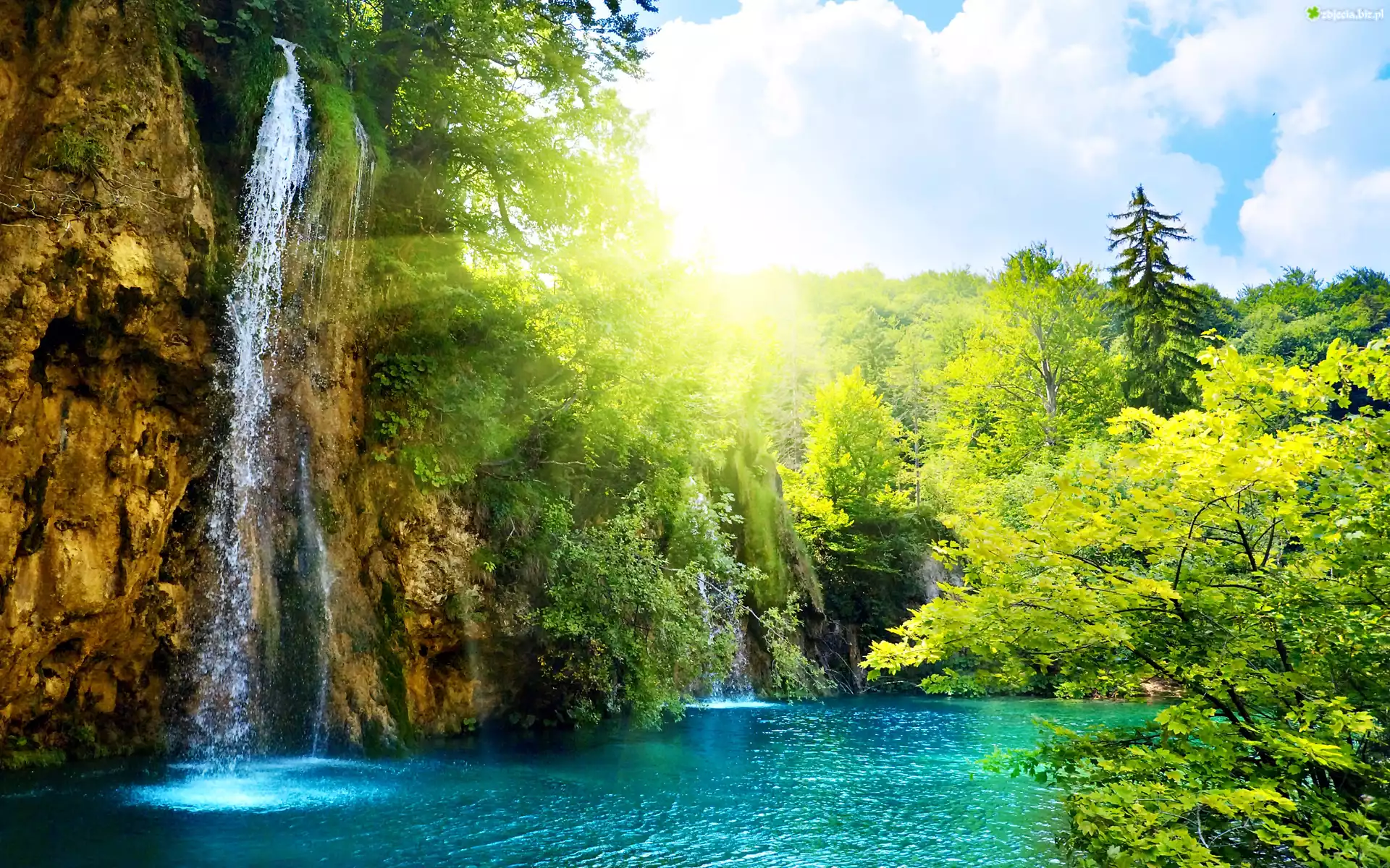 Zdjęcie Wodospad, Drzewa, Chmury