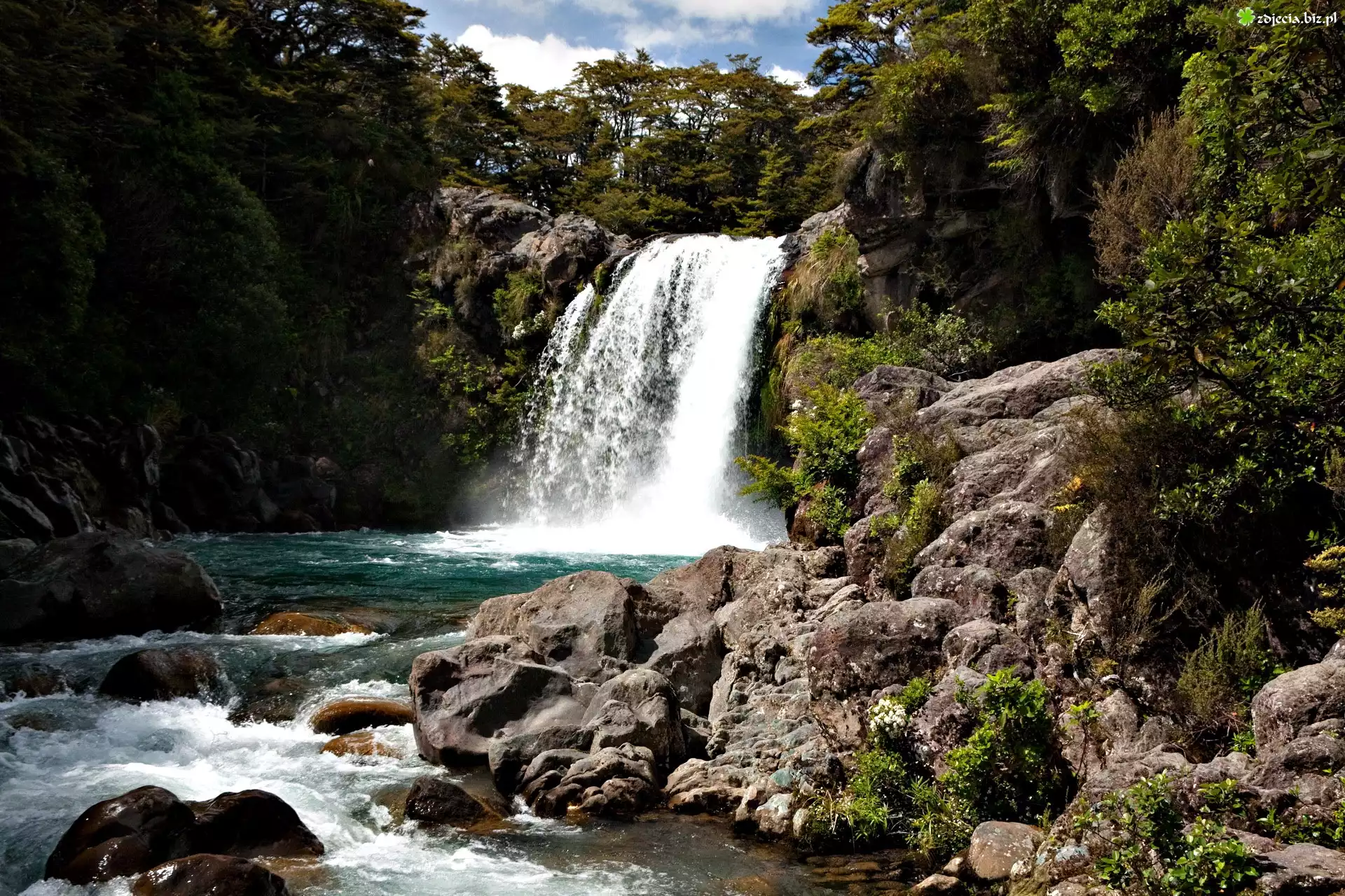 Zdjęcie Wodospad, Drzewa, Kamienie
