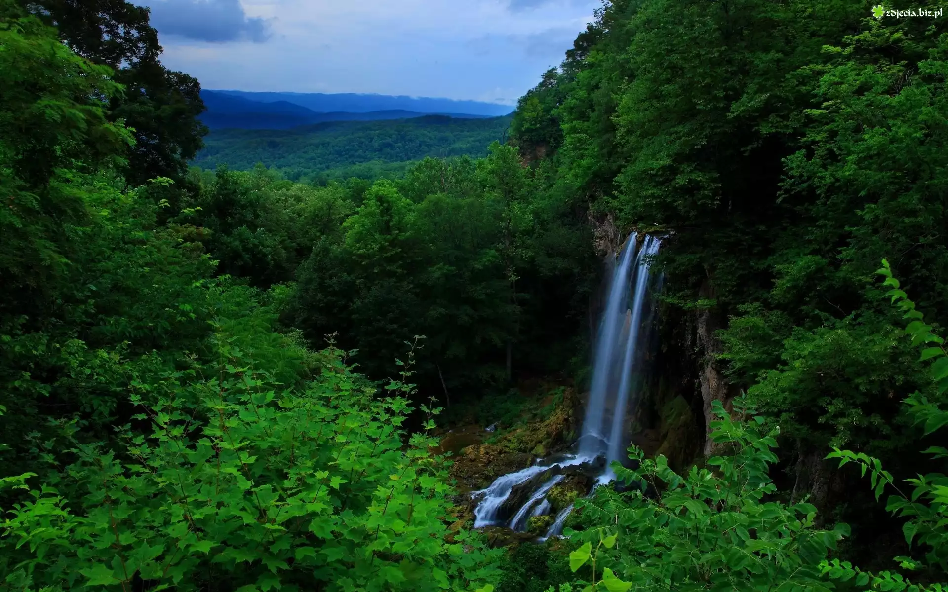 Zdjęcie Wodospad, Drzewa, Zieleń