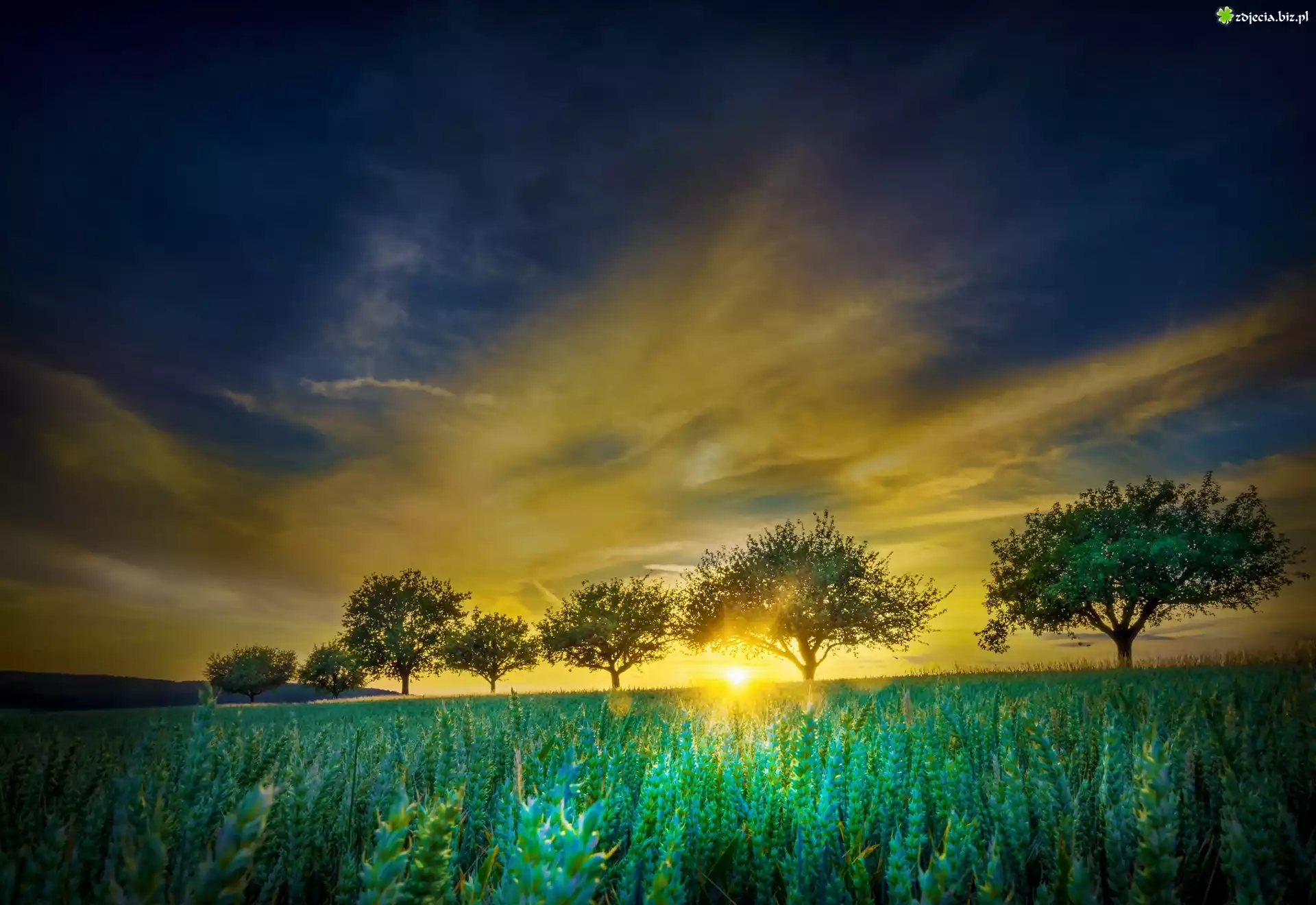 Zdjęcie Świt, Wschód Słońca, Drzewa, Pole
