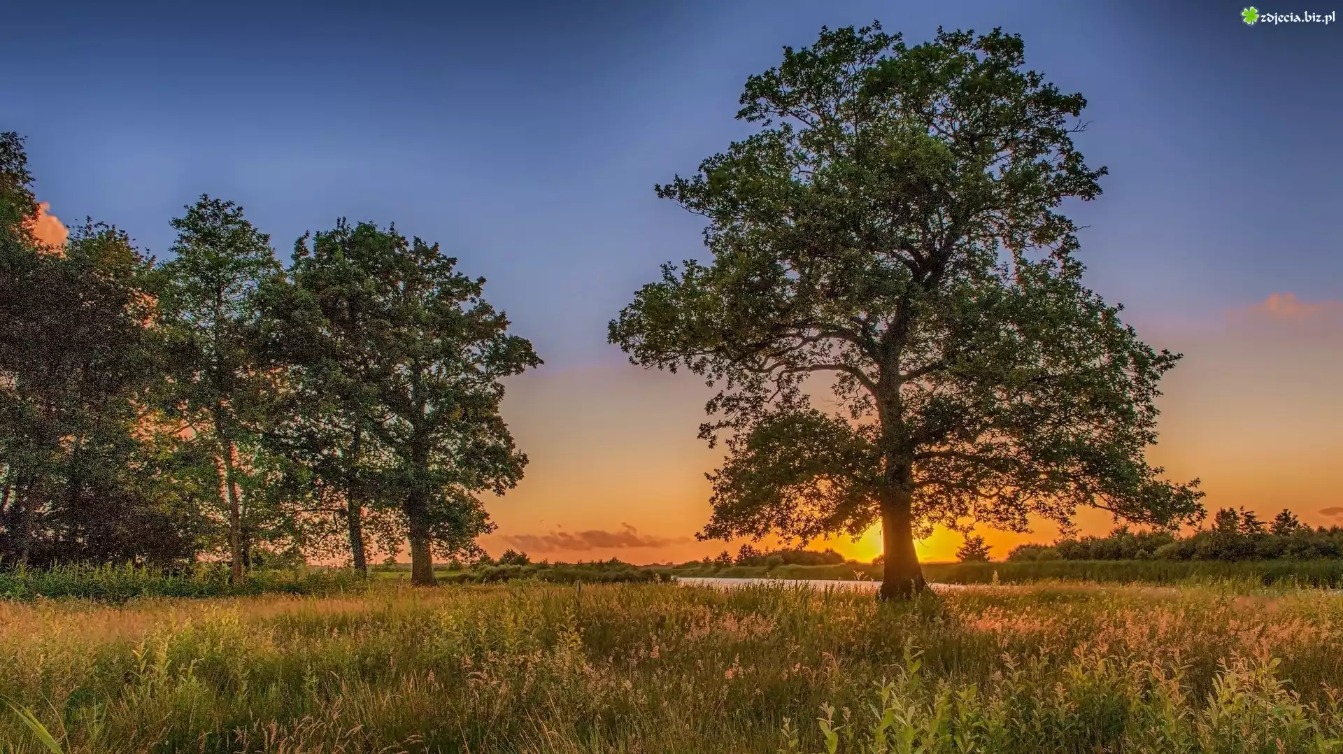 Zdjęcie Drzewa, Trawa, Zachód, Słońca