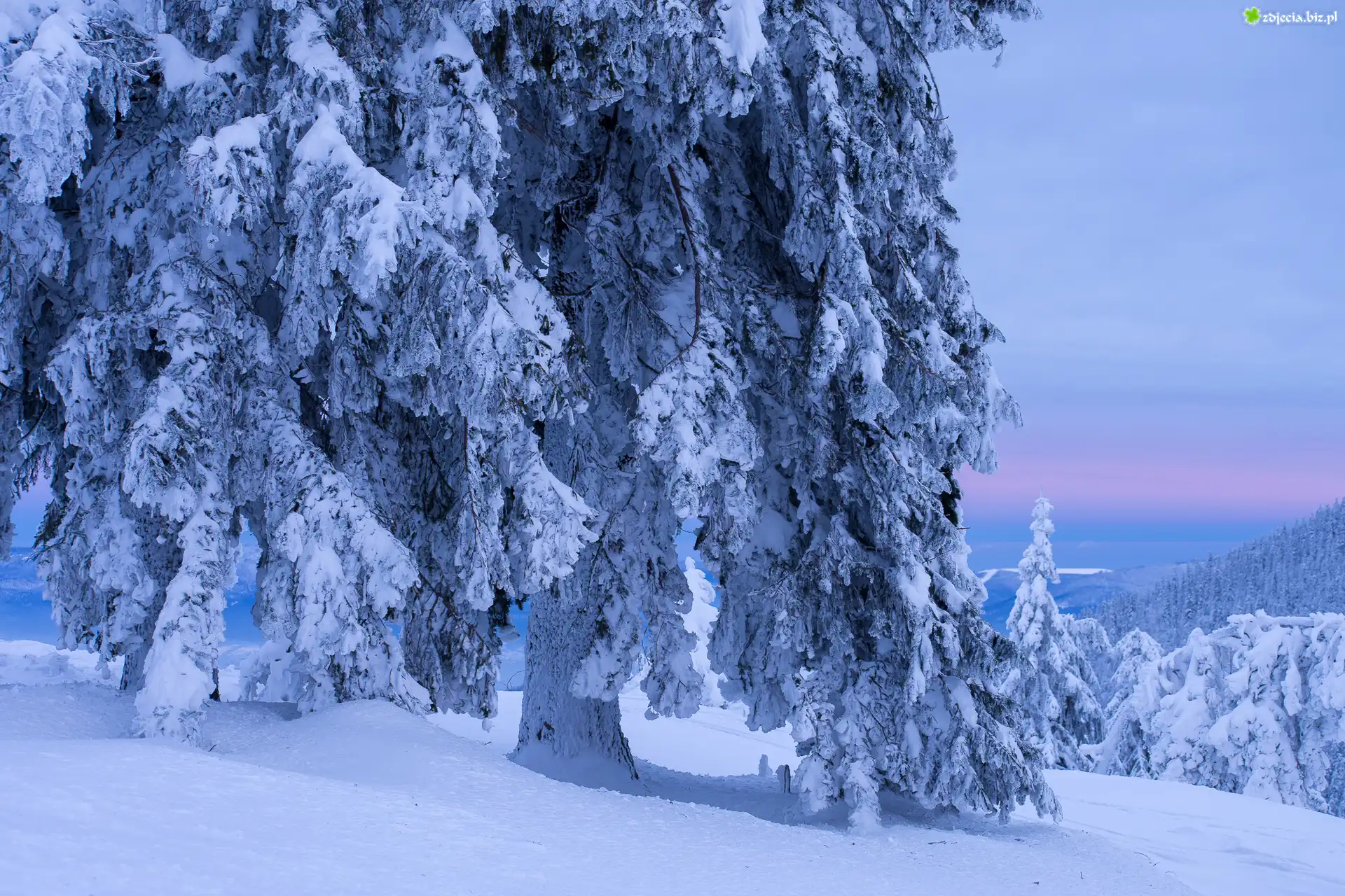 Zdjęcie Śnieg, Zaśnieżone, Drzewa, Zima