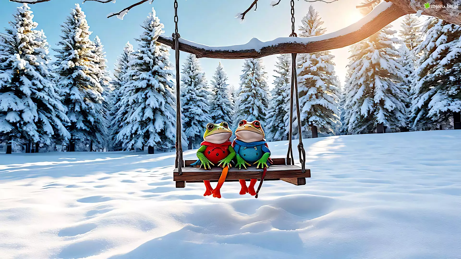 Zdjęcie Zima, Żaby, Huśtawka, Drzewa
