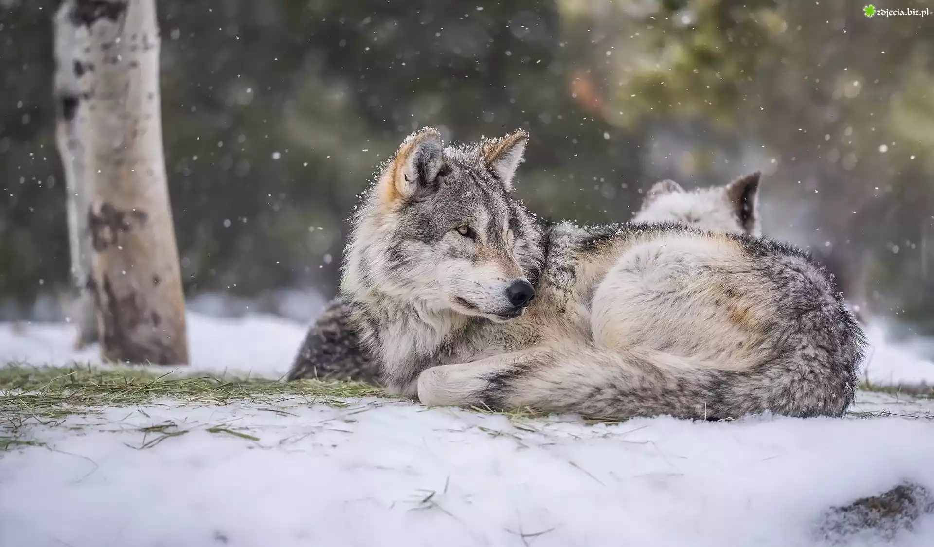 Zdjęcie Zima, Wilki, Las, Drzewa