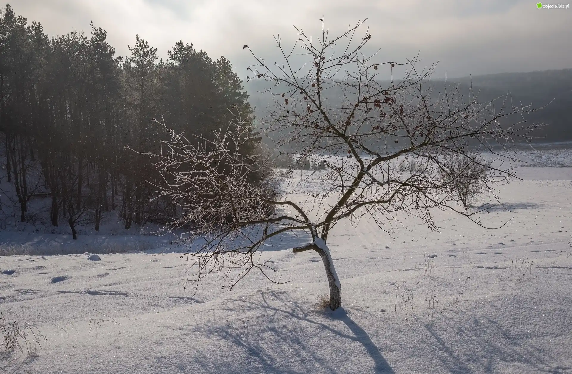 Zdjęcie Zima, Drzewa, Mgła