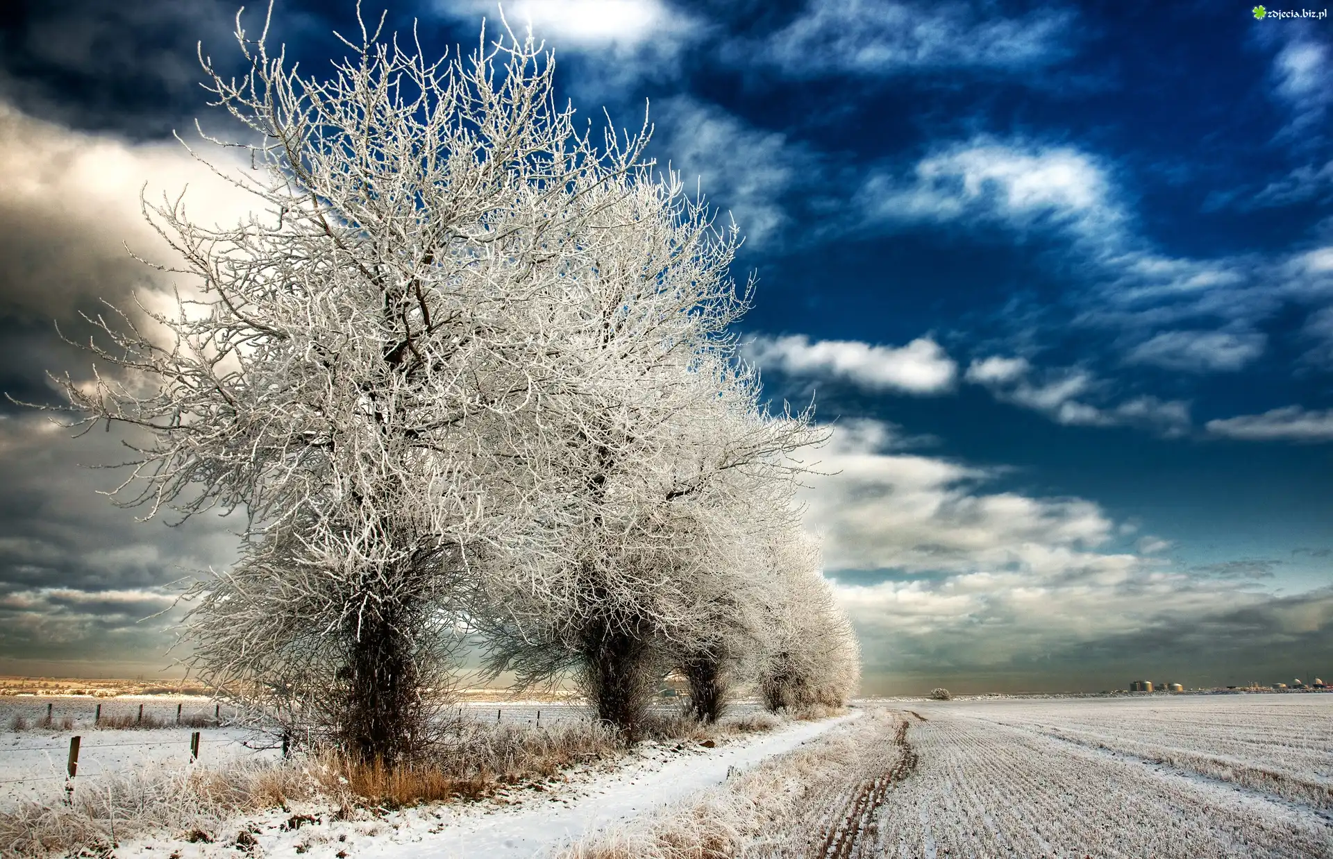 Zdjęcie Drzewa, Śnieg, Zima, Pole