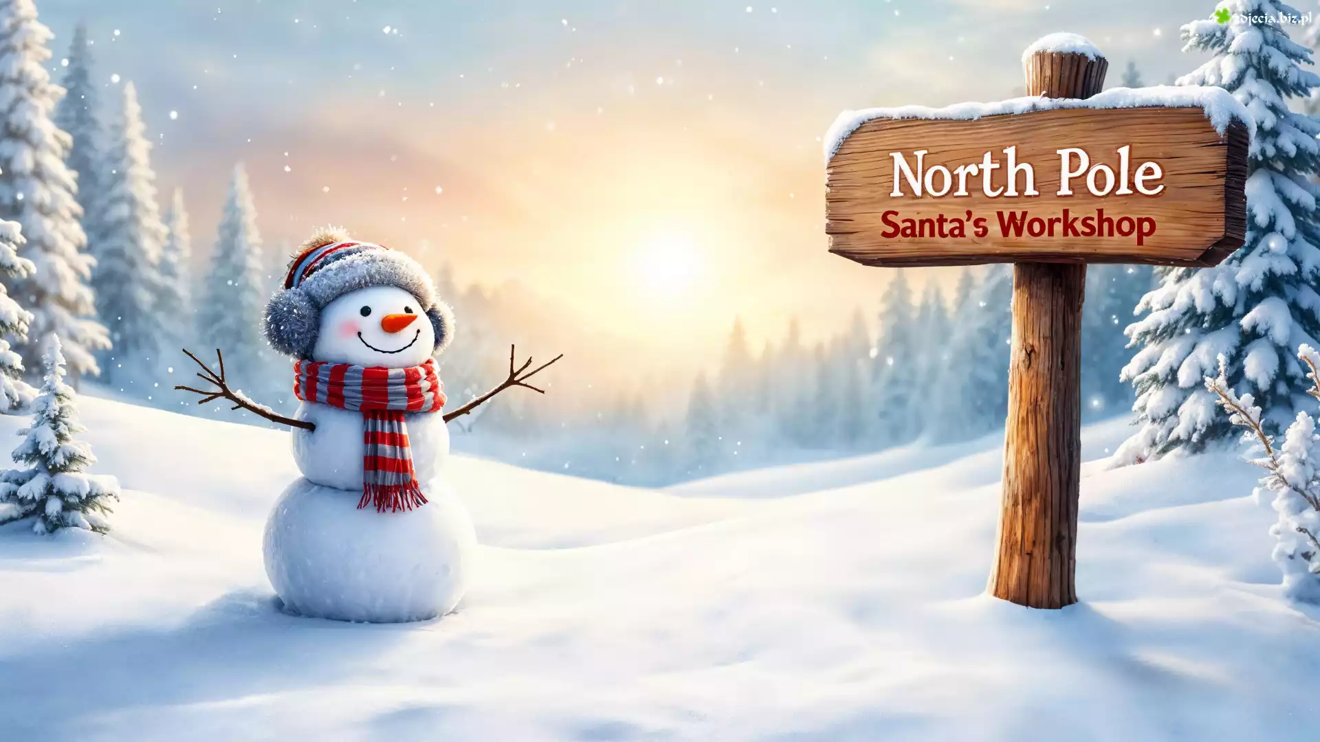 Zdjęcie Zima, Bałwanek, Tablica, Drzewa
