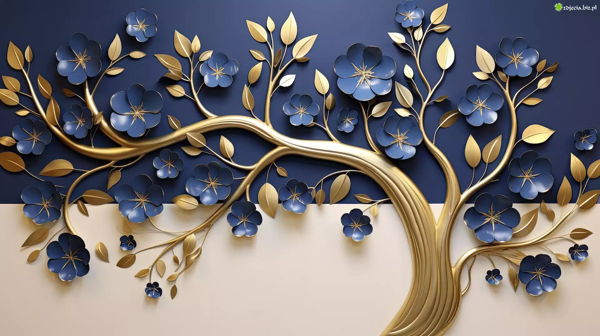 Zdjęcie Grafika, Drzewko, Kwiaty, Niebieskie, Listki
