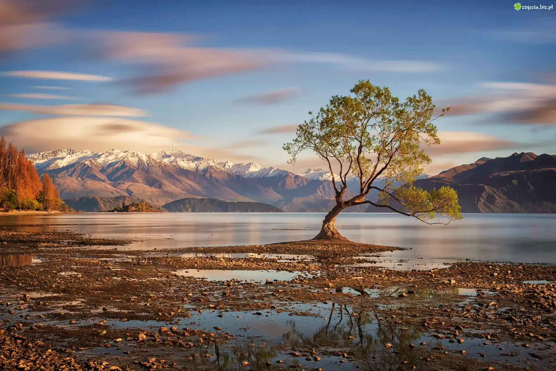 Zdjęcie Drzewo, Jezioro, Góry, Chmury