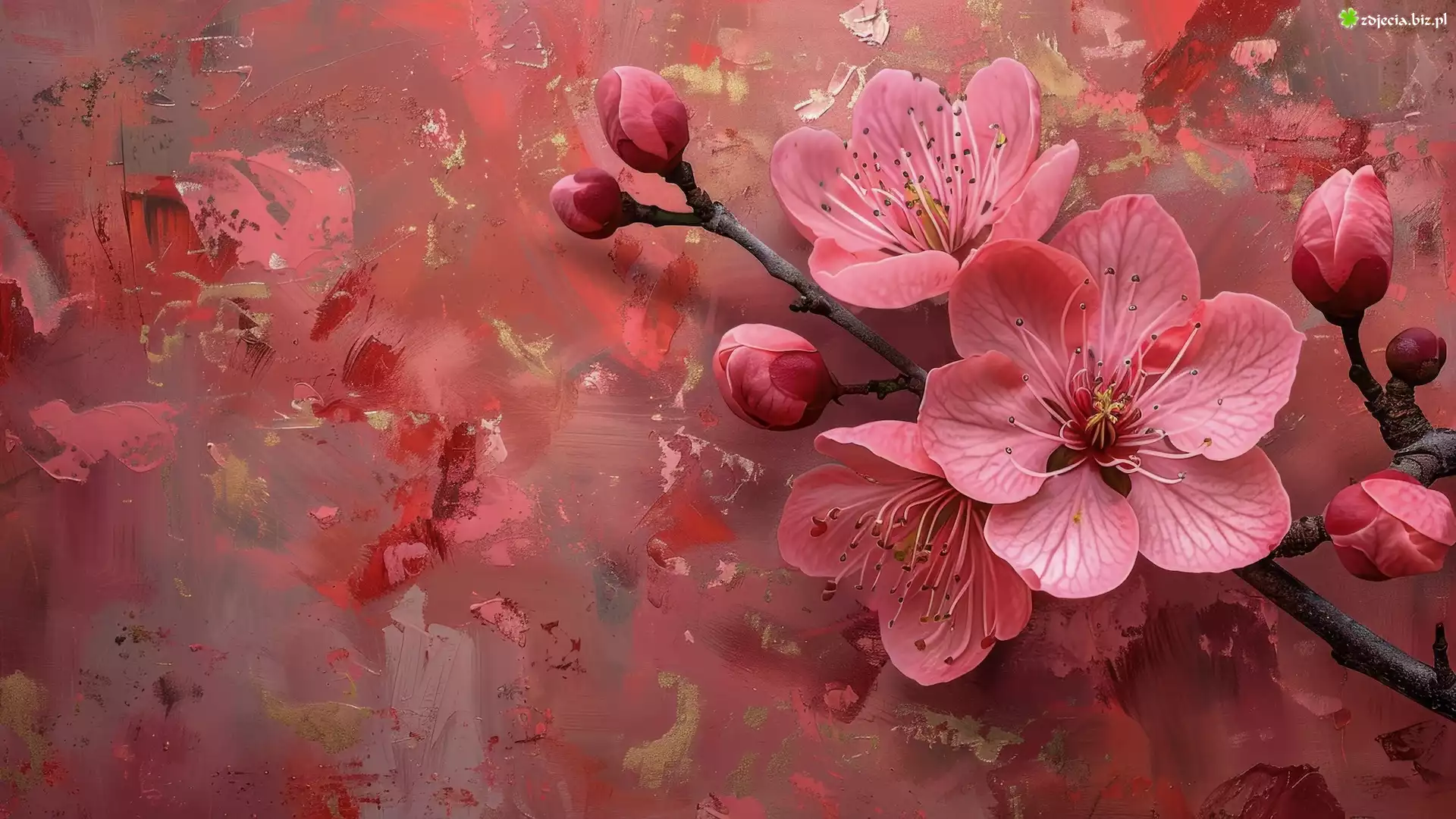 Zdjęcie Kwiaty, Różowe, Gałąź, Drzewo owocowe, Grafika