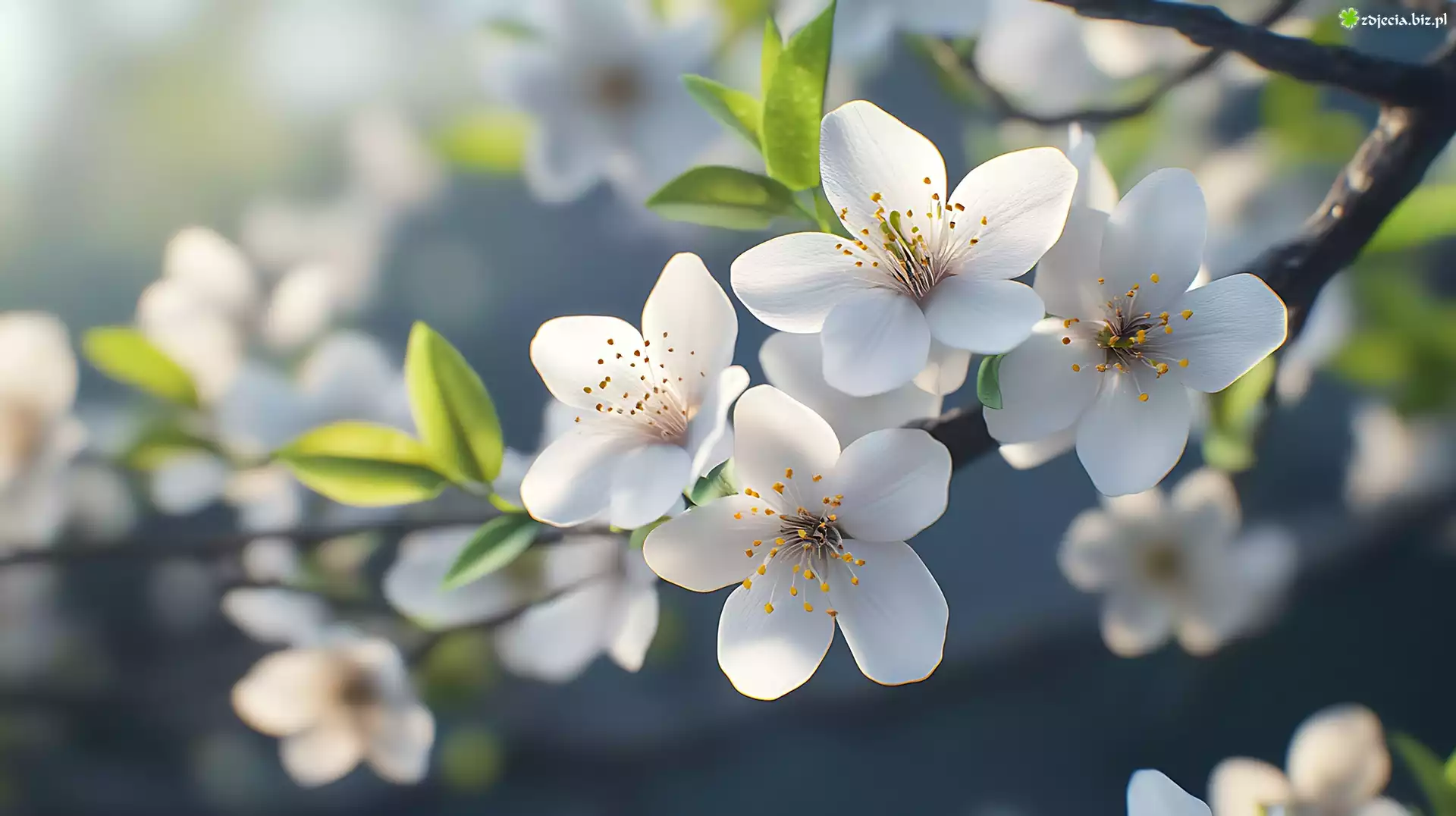 Zdjęcie Białe, Kwiaty, Gałązka, Drzewo owocowe, Grafika