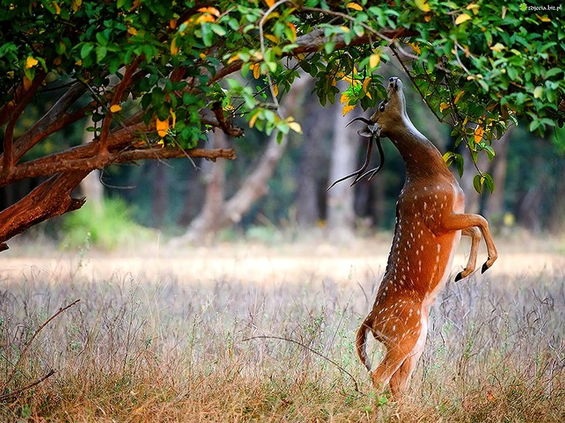 Zdjęcie Jeleń, Drzewo, Pokarm