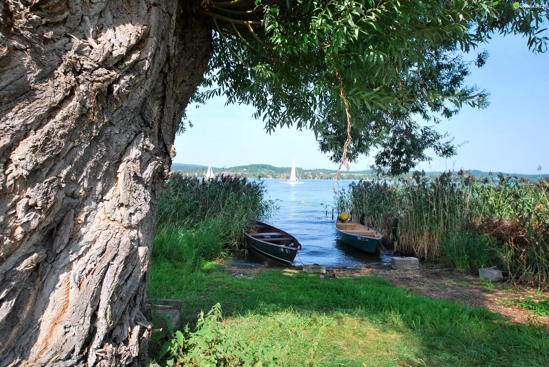 Zdjęcie, Wierzba, Kora, Jezioro, Łódki