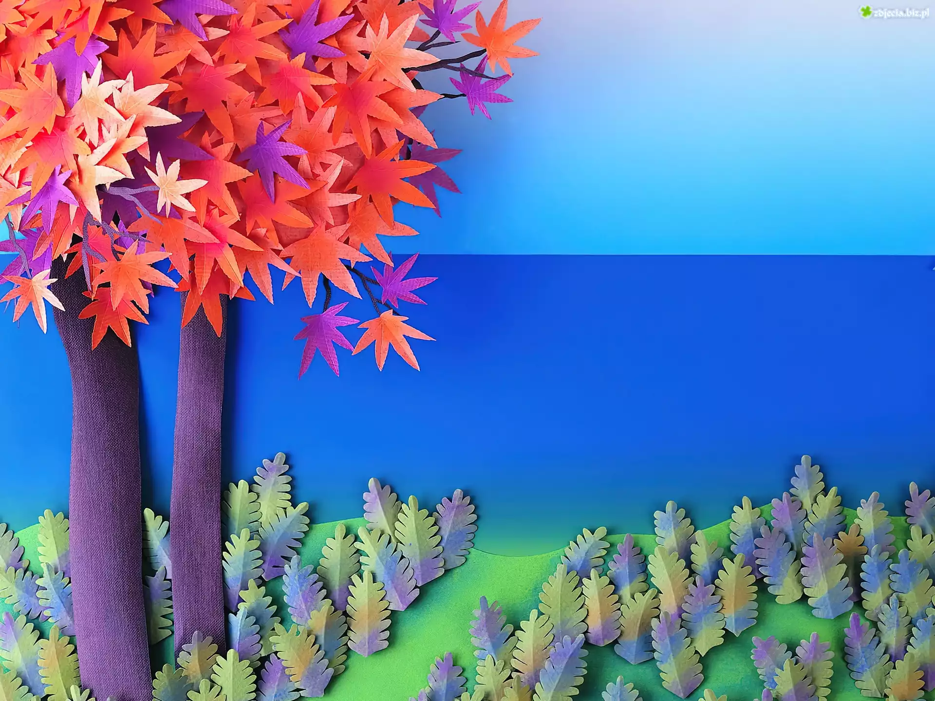 Zdjęcie Drzewo, Klon, Liście, Jezioro, Wycinanki