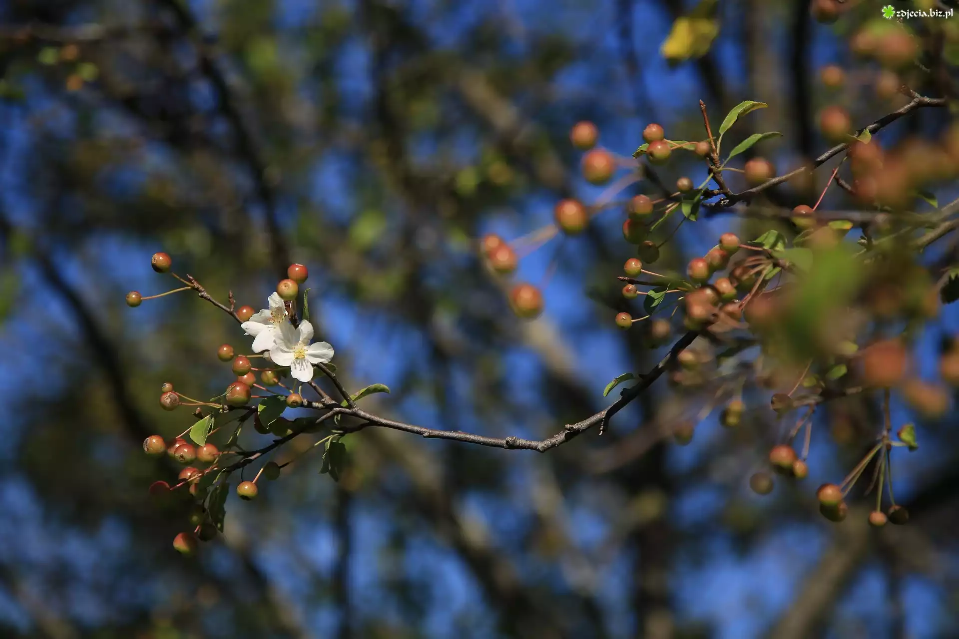Zdjęcie, Drzewo owocowe, Gałązka, Białe, Kwiaty, Owoce