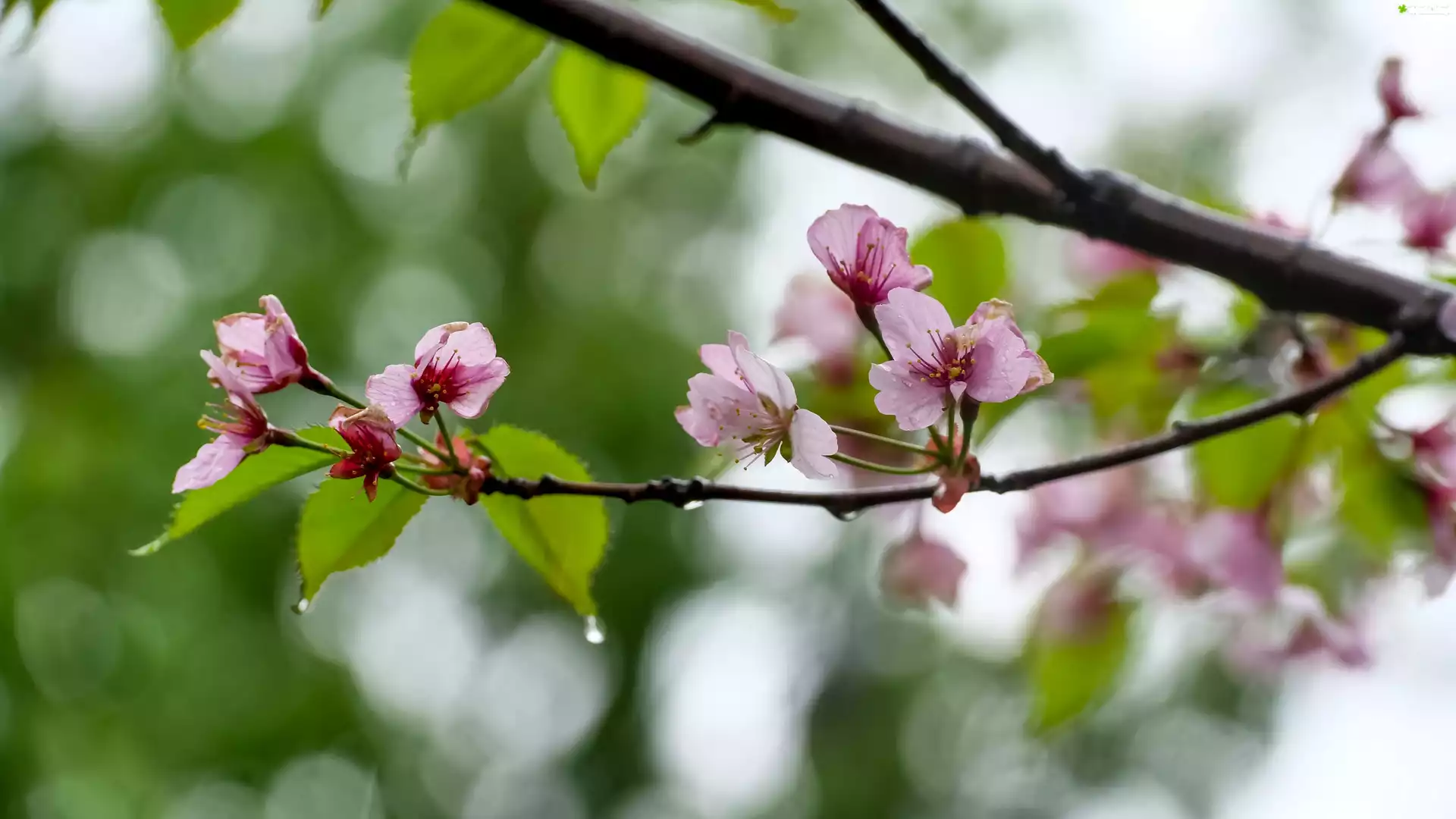 Zdjęcie, Kwiaty, Drzewo owocowe, Płatki, Krople