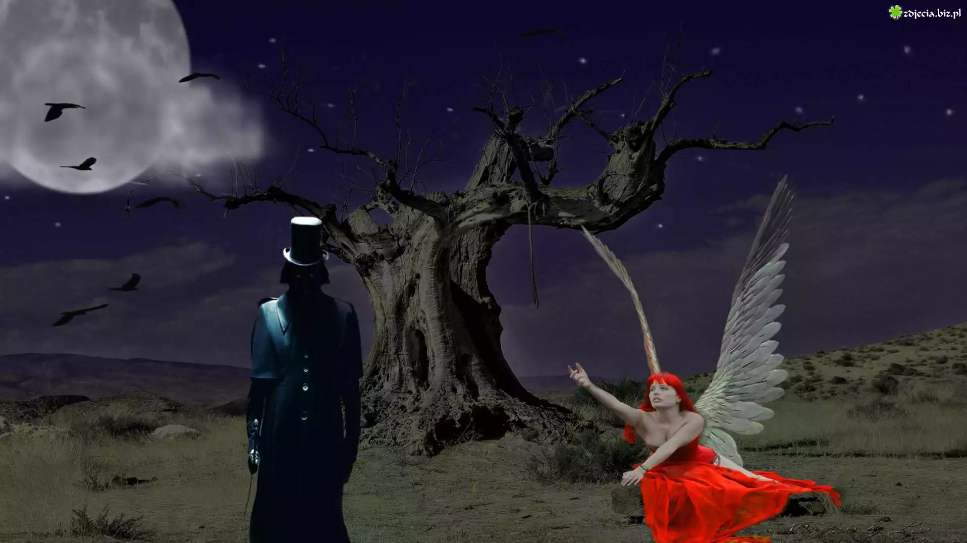 Zdjęcie Drzewo, Czarna, Postać, Anioł