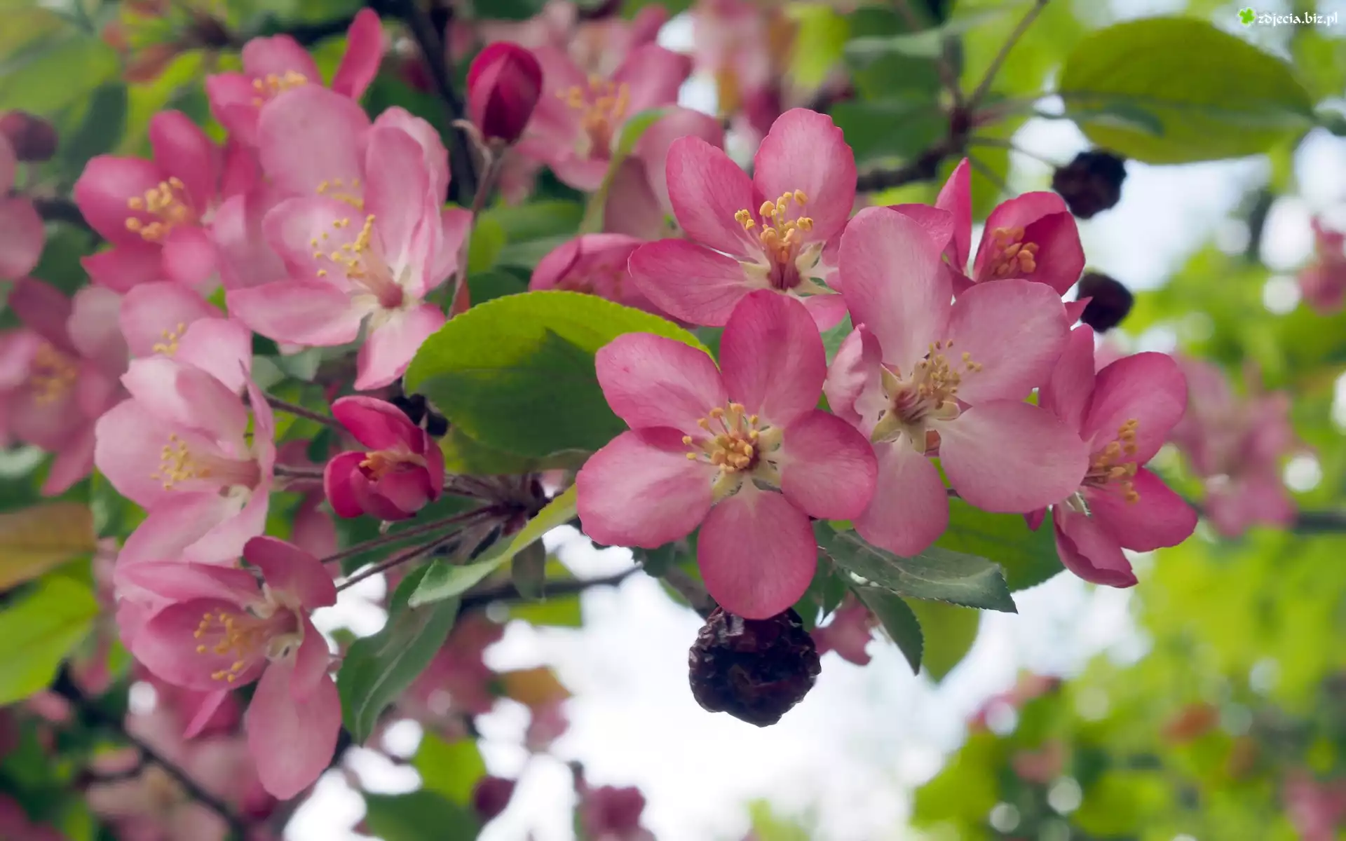 Zdjęcie Rozkwitnięte, Drzewo owocowe, Gałązka, Różowe, Kwiaty, Jabłoń