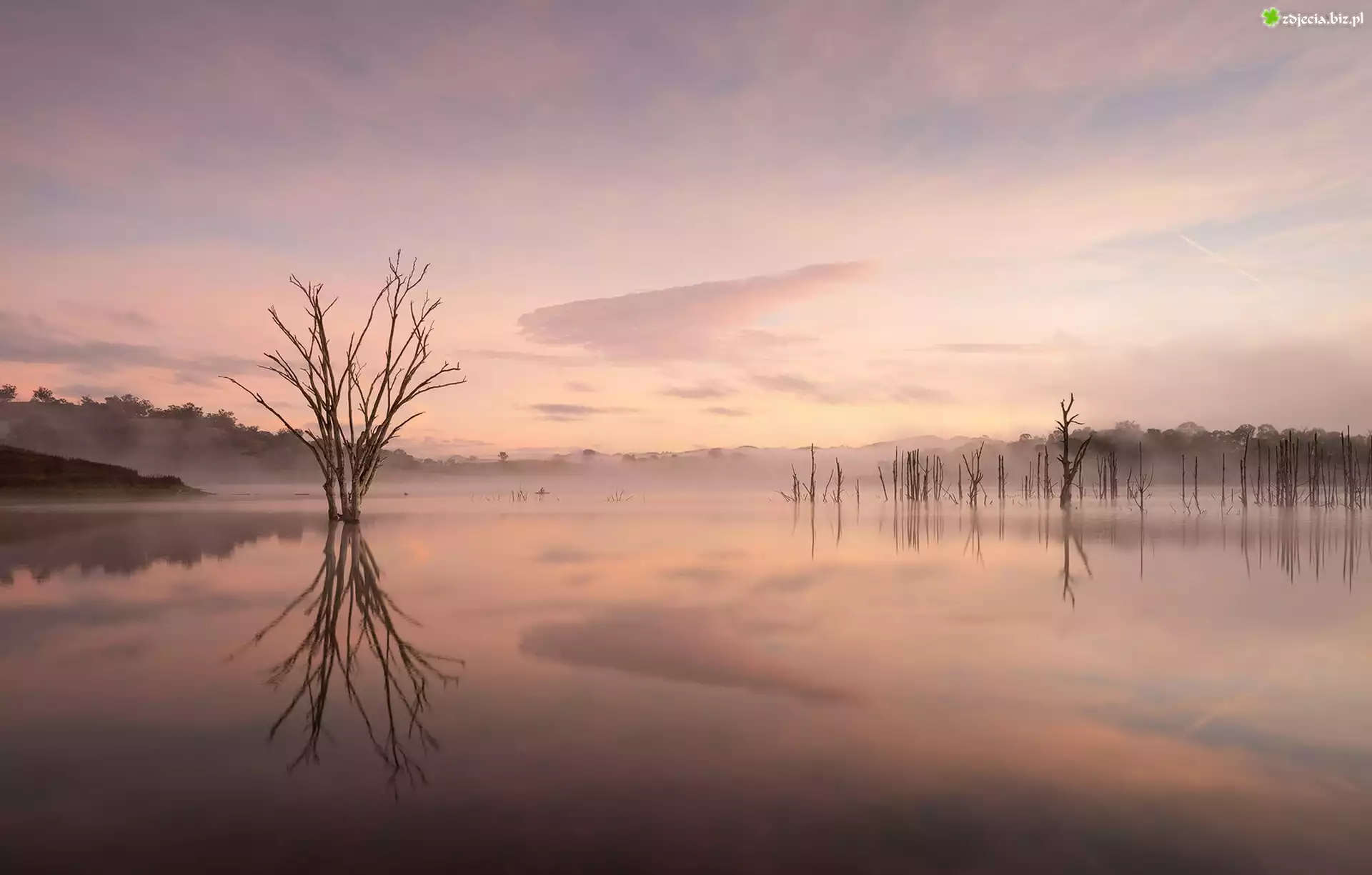 Zdjęcie Drzewo, Woda, Szarość, Chmury
