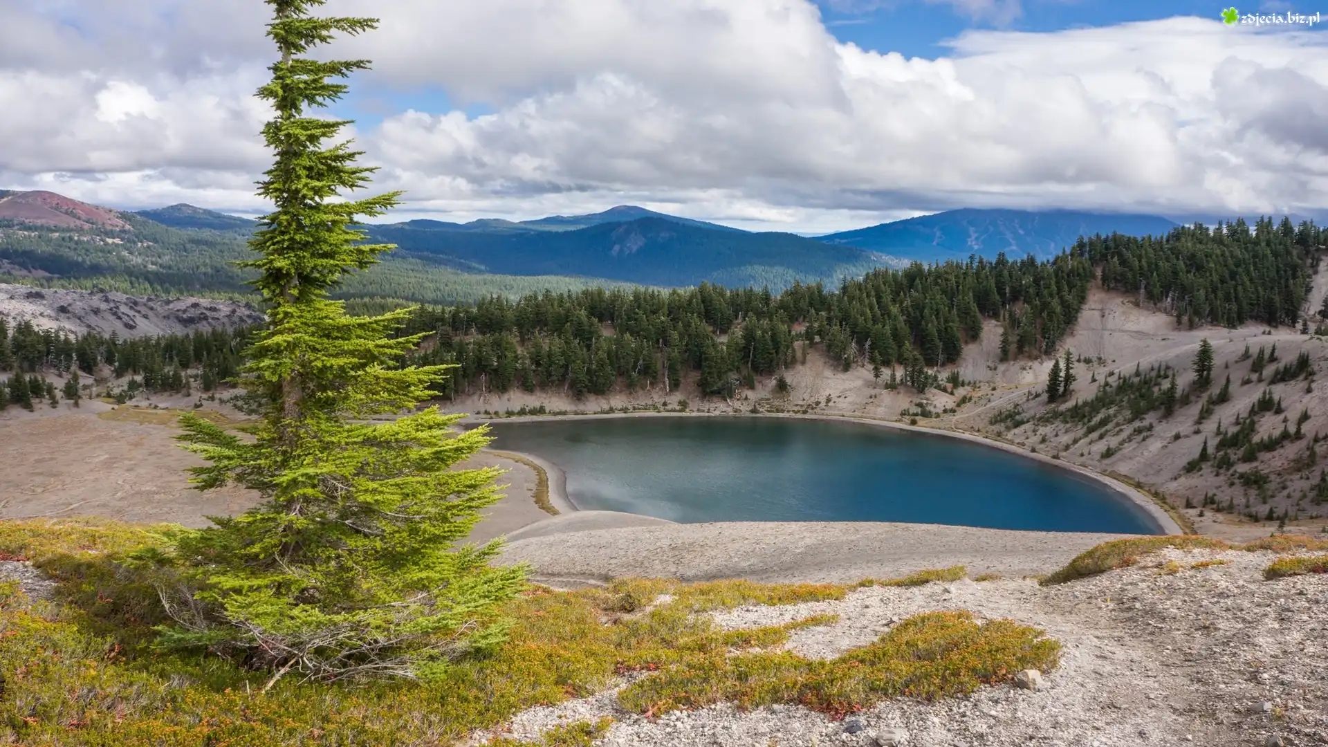 Zdjęcie Drzewo, Jezioro, Wzgórza, Góry