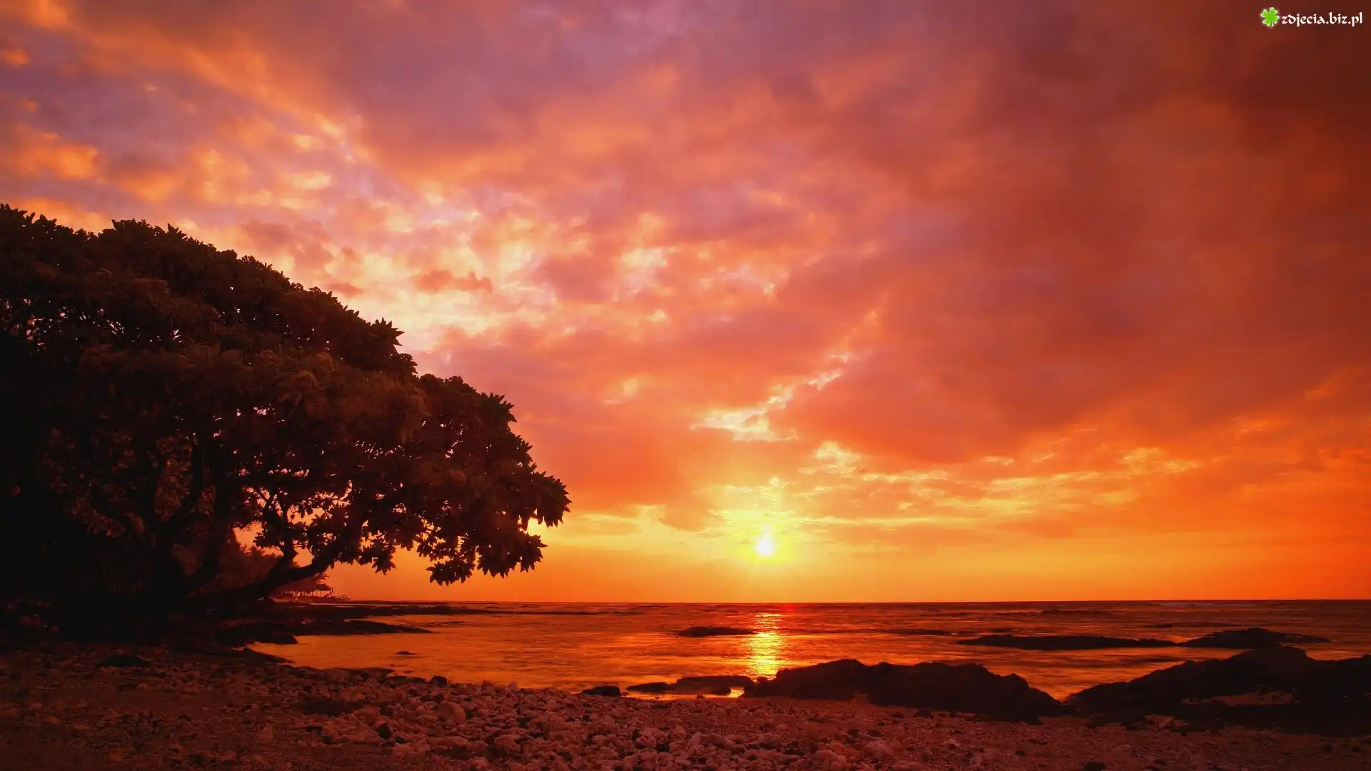 Zdjęcie Drzewo, Morze, Zachód Słońca