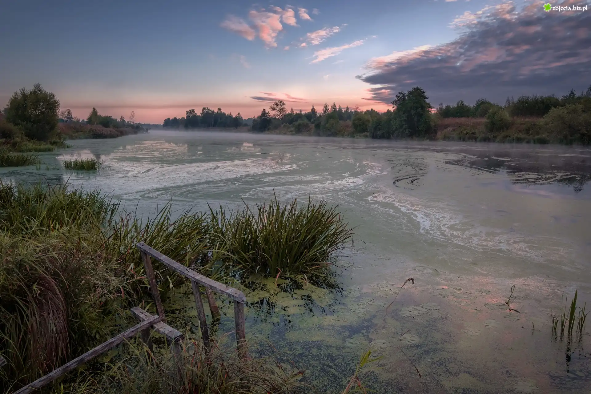 Zdjęcie Rzeka Dubna, Mgła, Drzewa, Trawa, Łatgalia, Łotwa