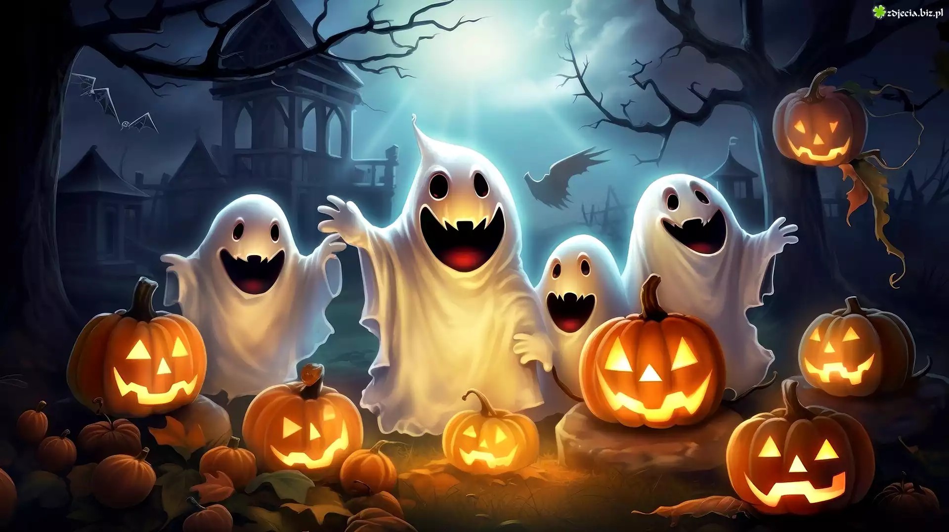 Zdjęcie Halloween, Dynie, Wesołe, Duchy, Noc, Grafika