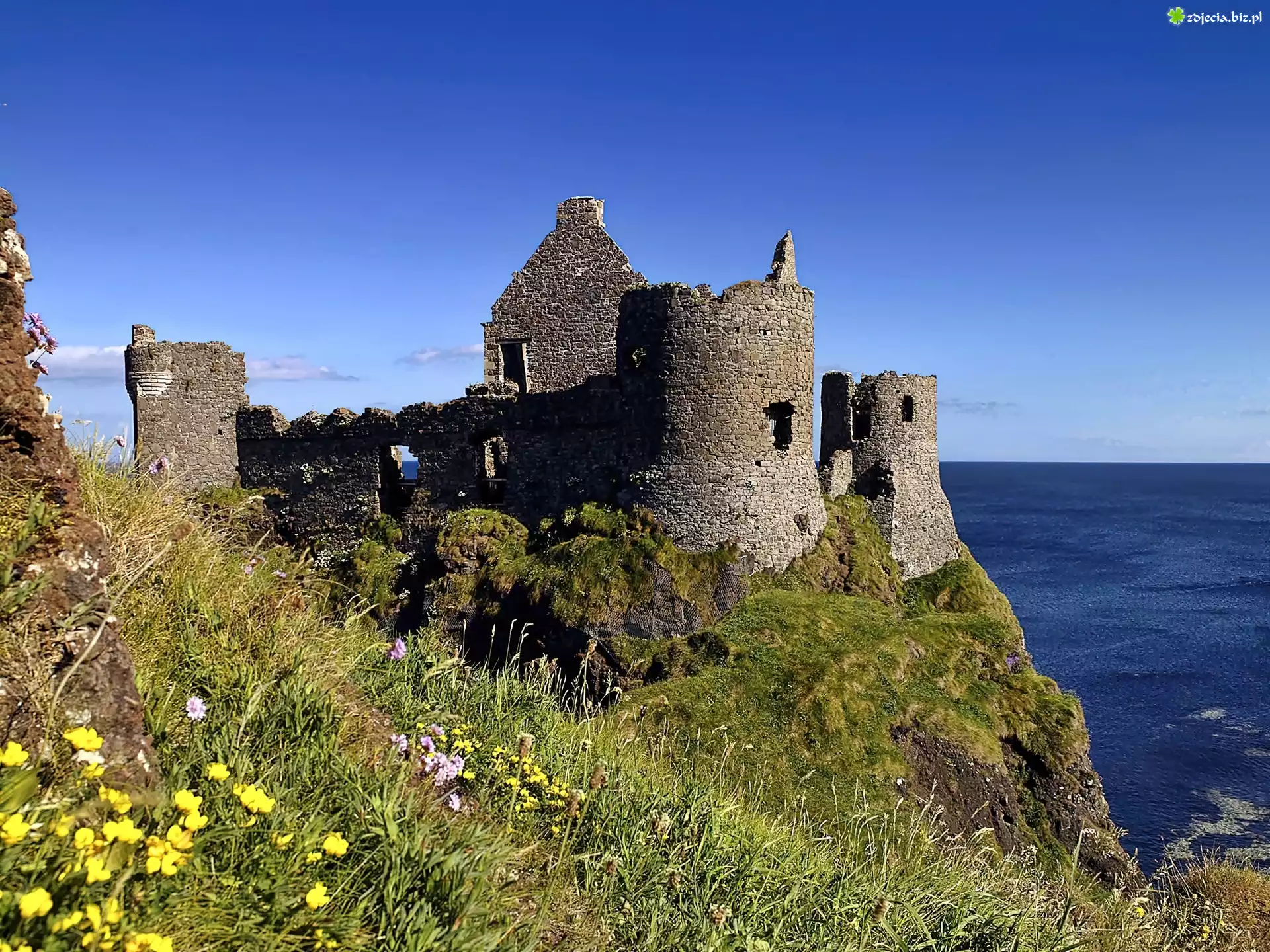 Zdjęcie Zamek, Dunluce, Ruiny, Morze, Łąka, Irlandia, Północna